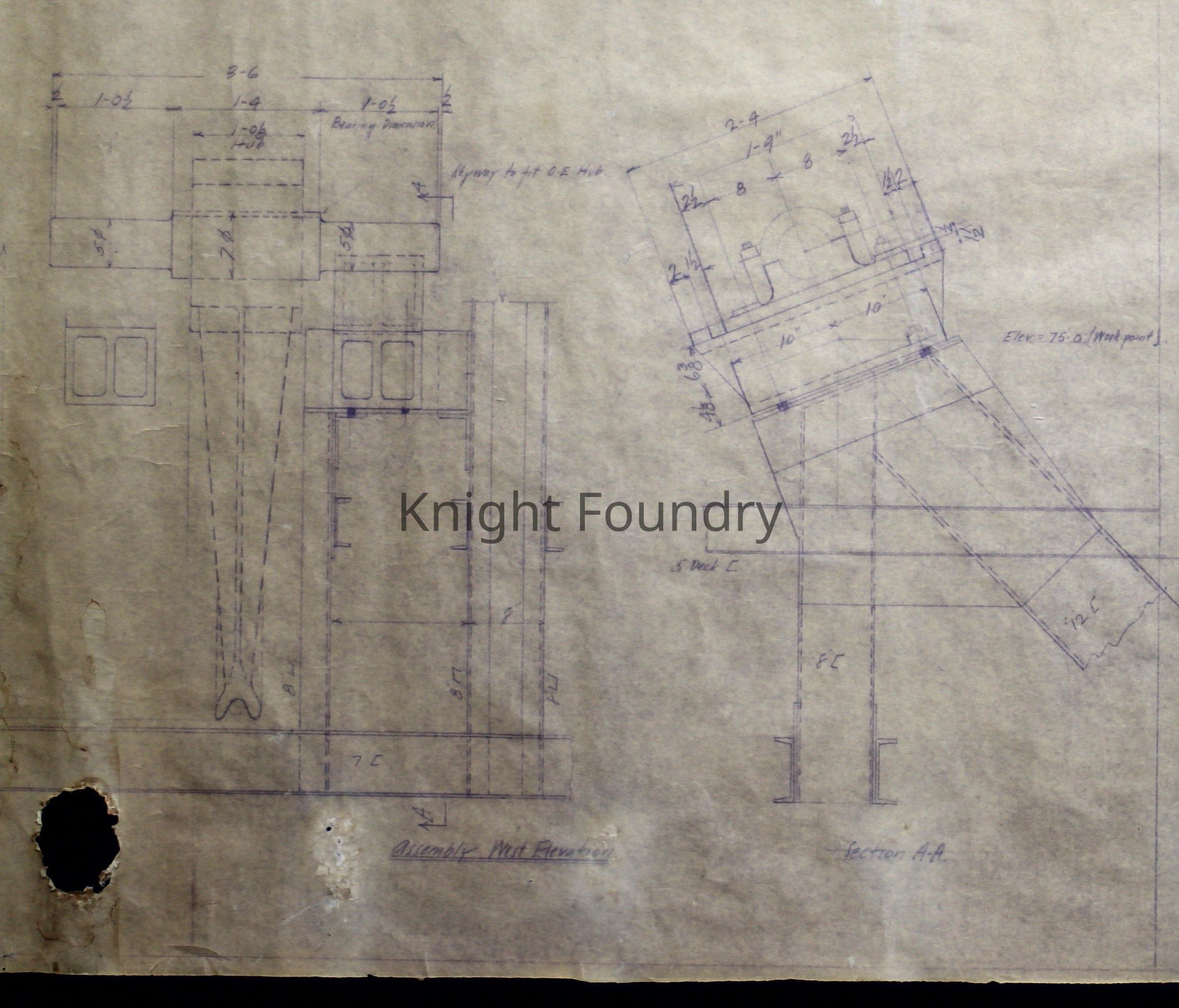 Drawing of sheave supports for the Old Eureka headframe. The scale is illegible.Collection