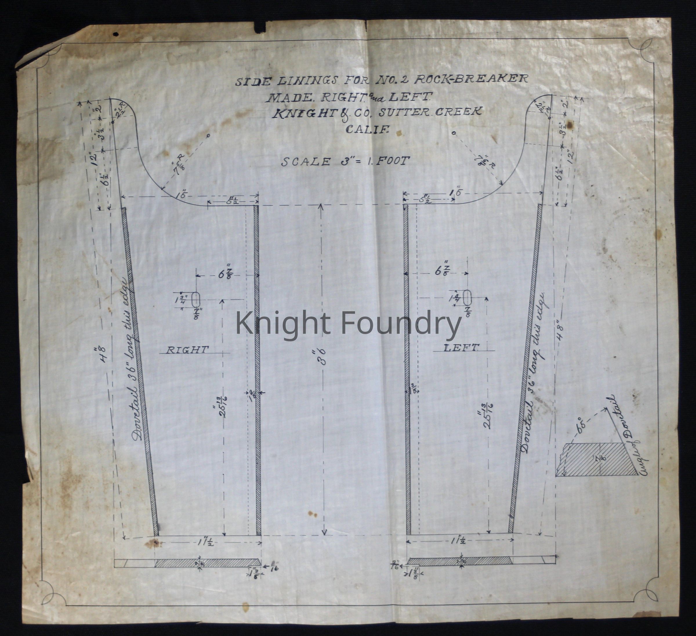 Drawing of side linings made for a No. 2 rock-breaker.Collection