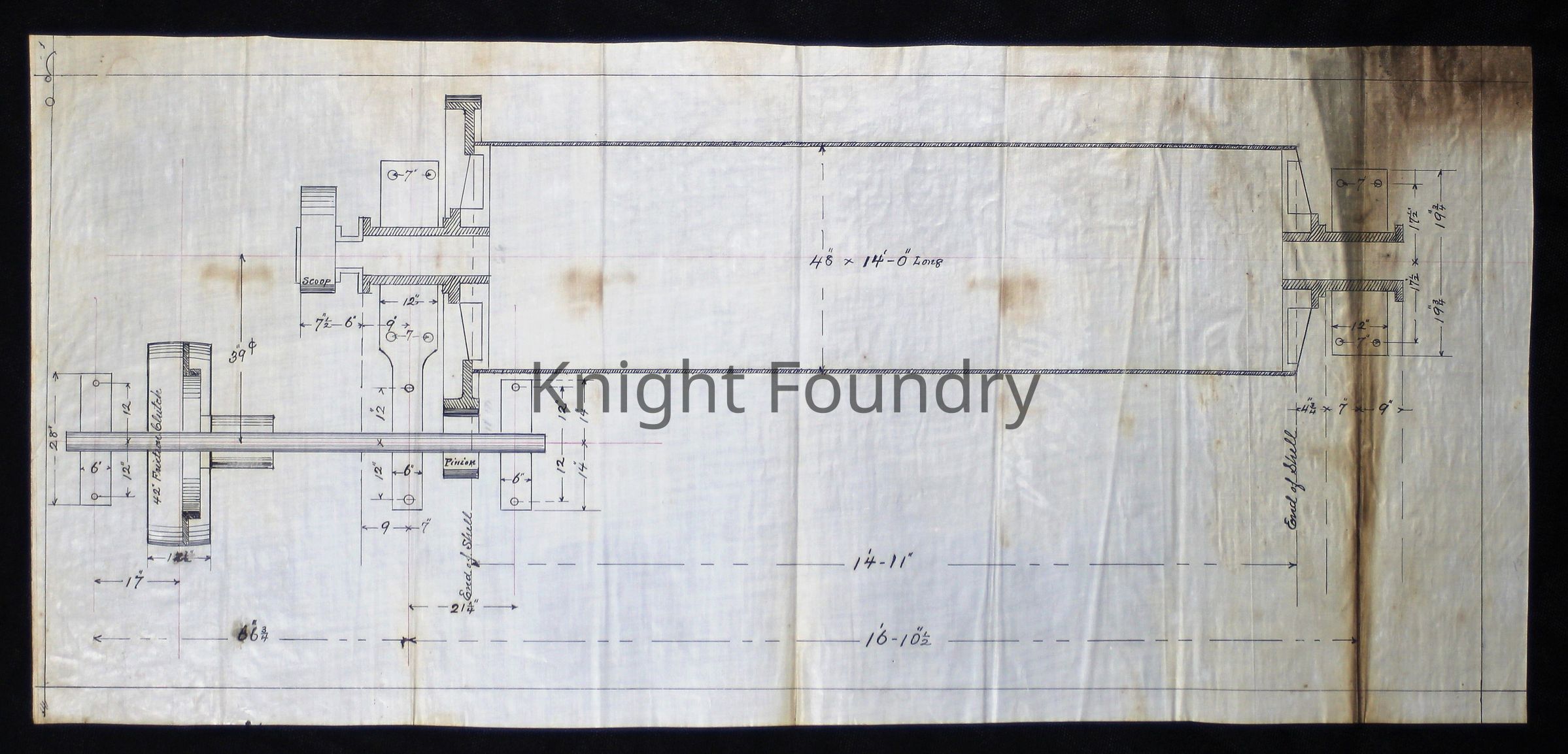 Drawing of a tube mill or rod mill with a 42 in friction clutch, shell, drive gears, and scoop.Collection