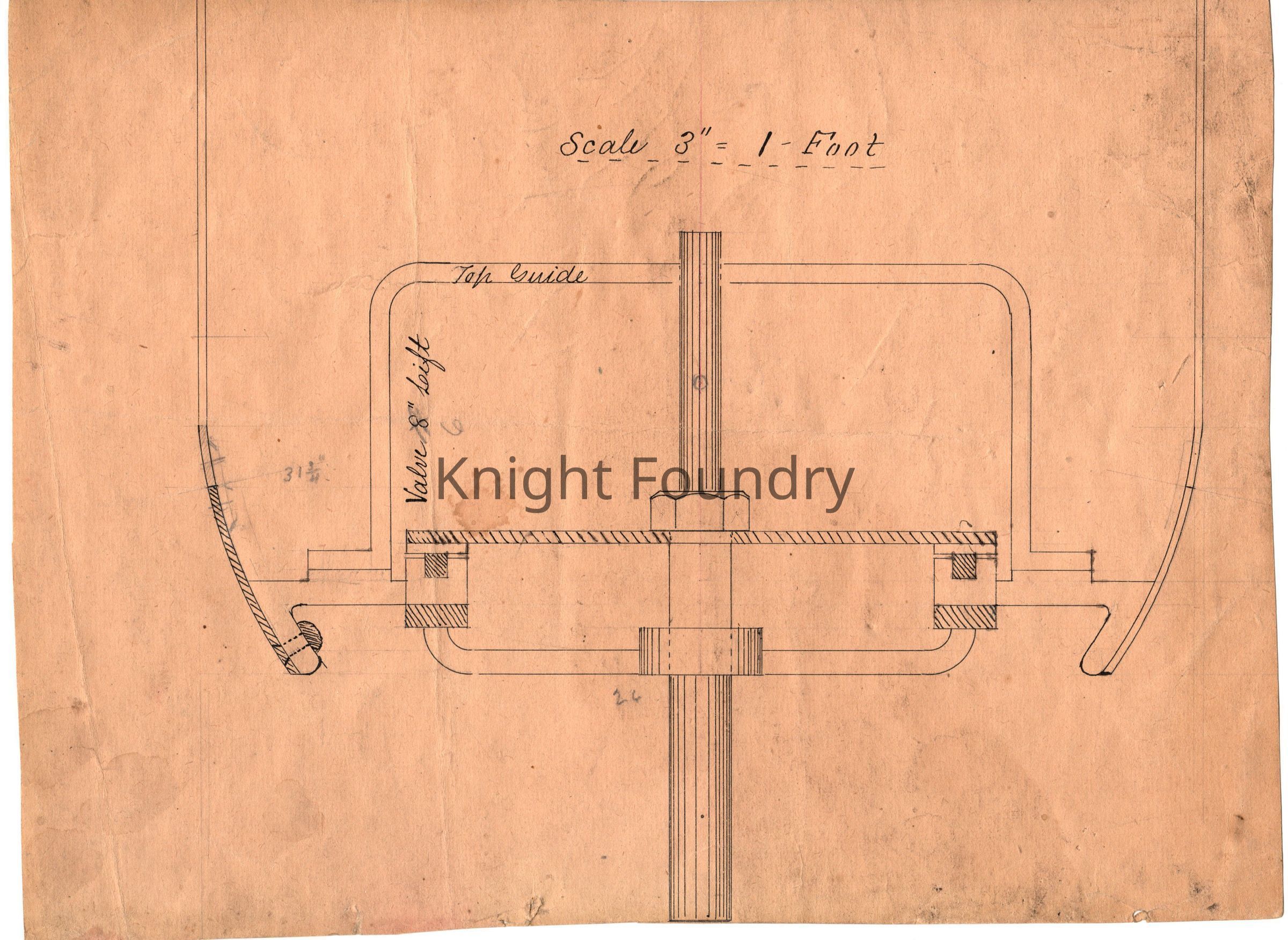 A 2 sided drawing. Front: Shows an 8 inch valve. 8 inches lift is crossed out and written as 6. Back: States Hector Gold Capacity 27 cCollection