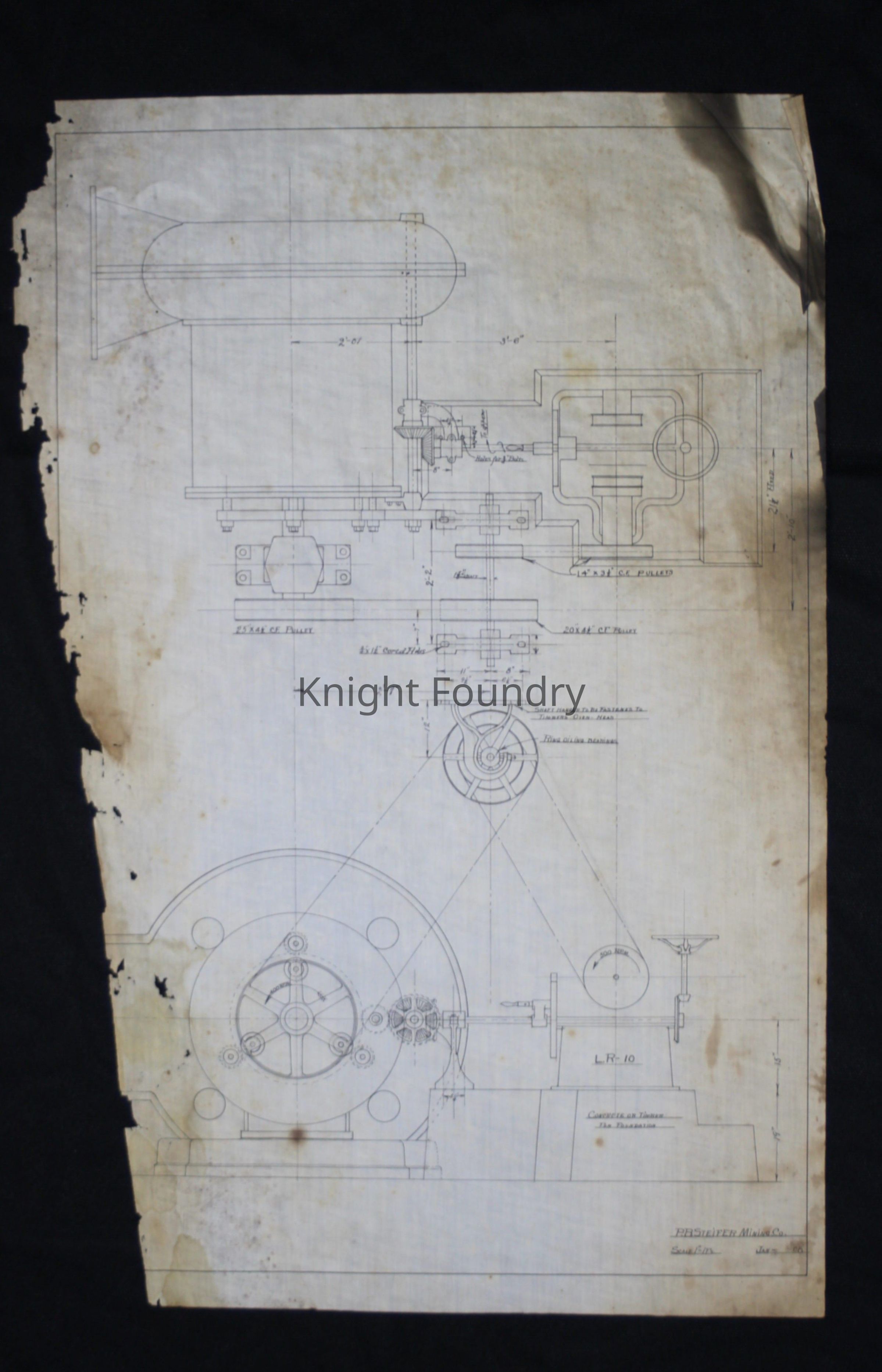 Drawing of a water wheel for the P.B. Steifer Mining Company showing 2 views of the motor.Collection