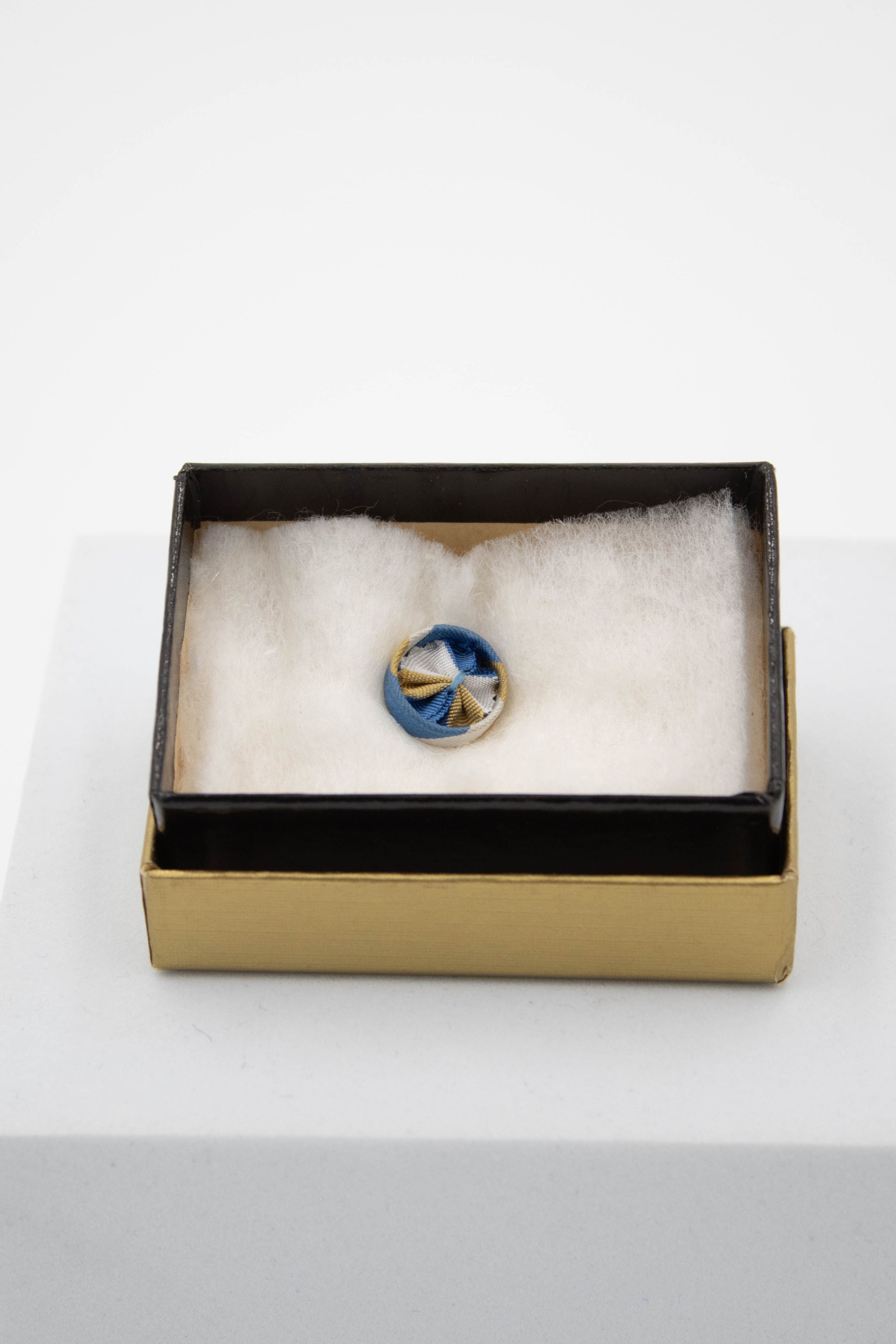 Blue and yellow Sons of the American Revolution member rosette pin.Context