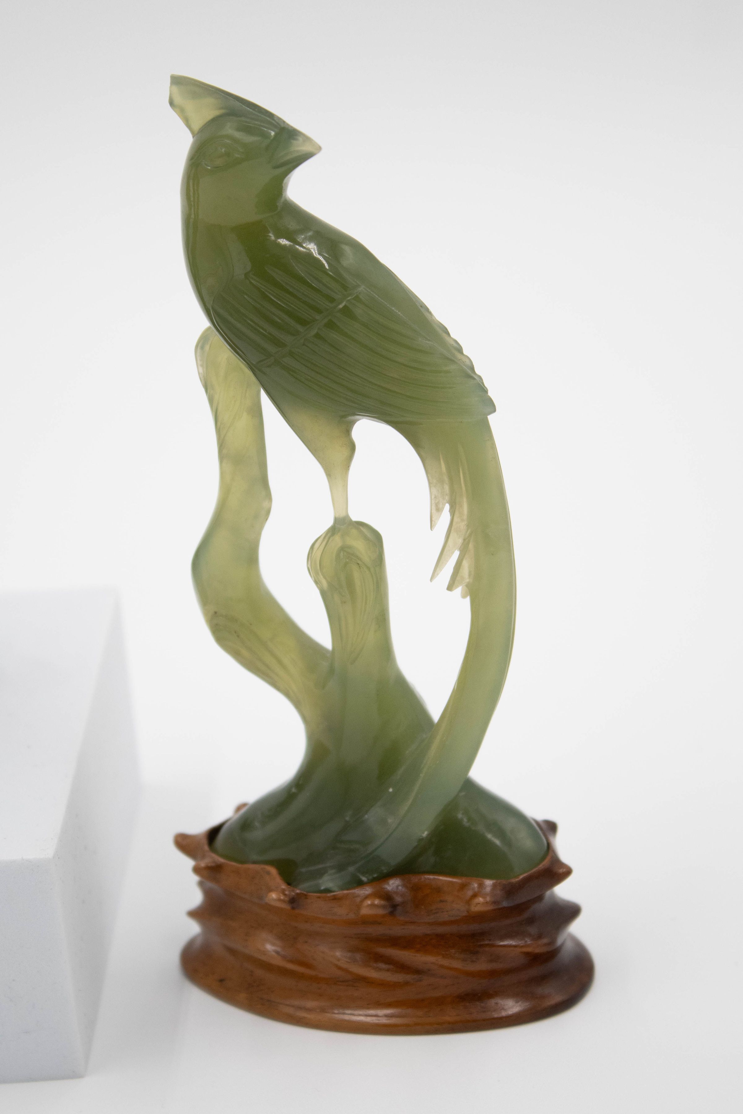 Pair of Carved Jade Bird Statuettes with Wooden StandsEntry/Object ID
