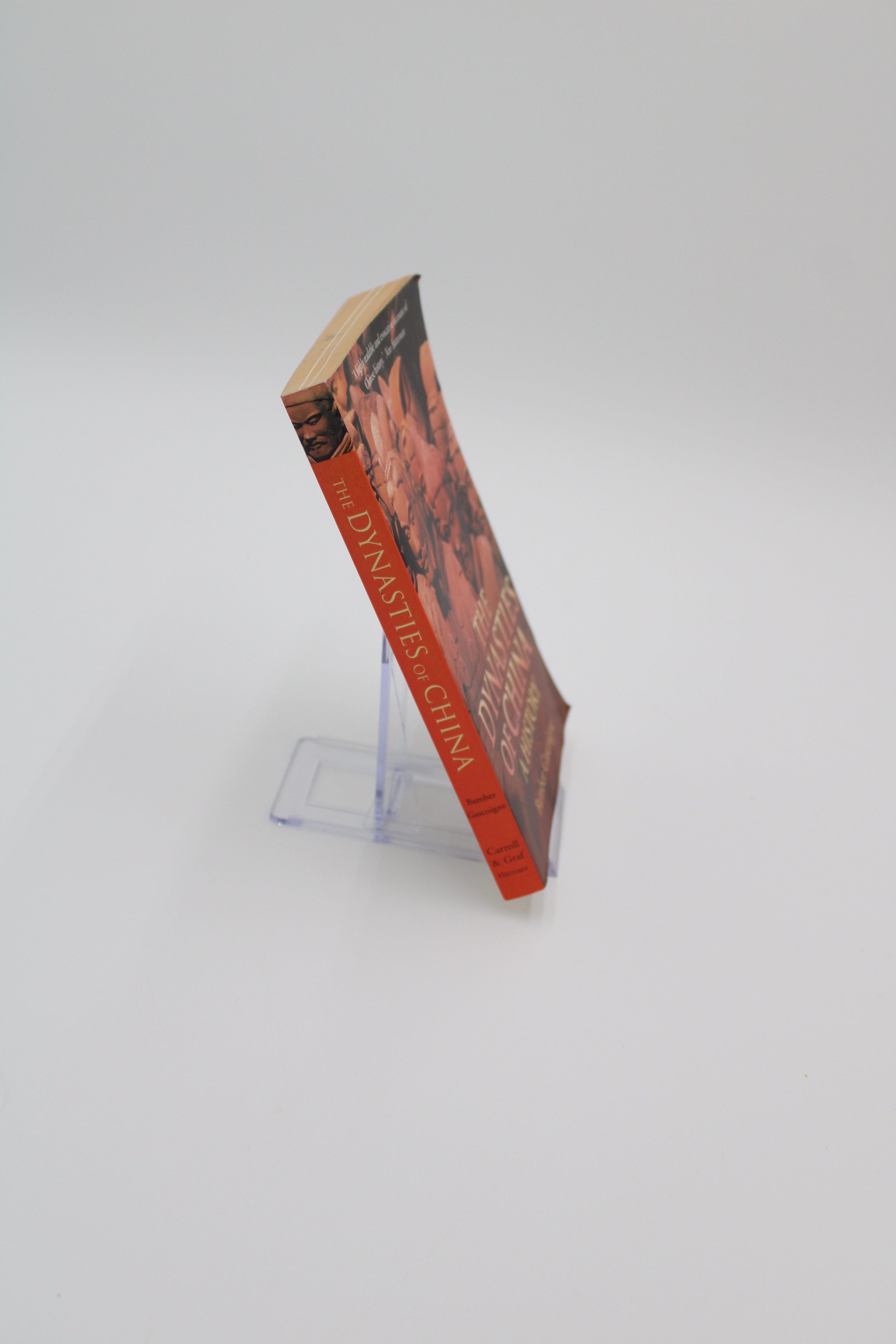 The Front Cover of "The Dynasties of China" features a red-shaded picture of the Terracotta Army as well as the book title and subtitle "A History" in a serif orange font.