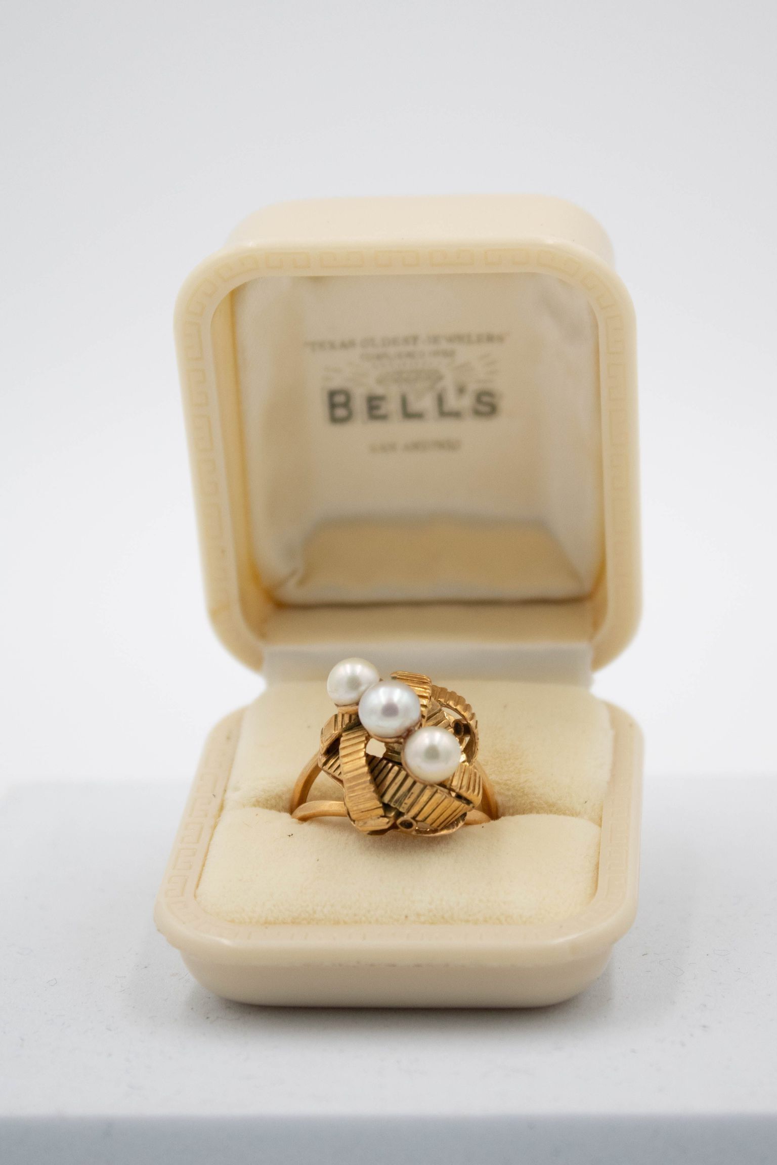 Gold Knot Ring with 3 Pearls in a White BoxEntry/Object ID