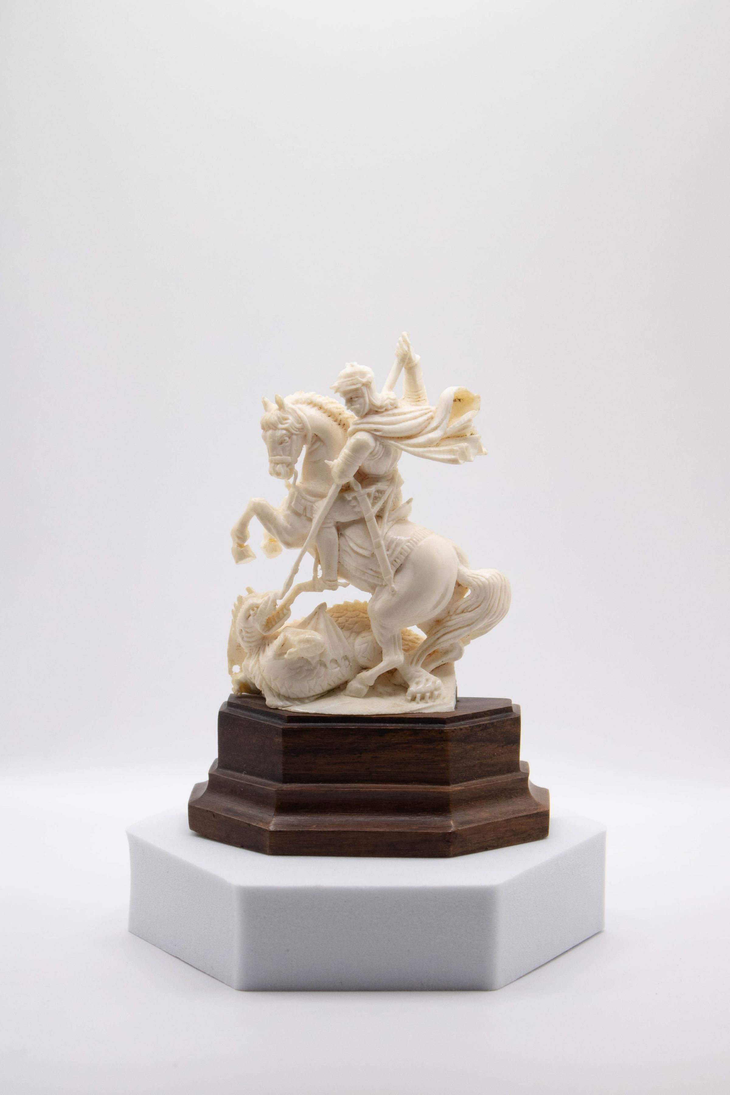 Carved Ivory Figurine of St. George Slaying the Dragon on Wooden BaseEntry/Object ID