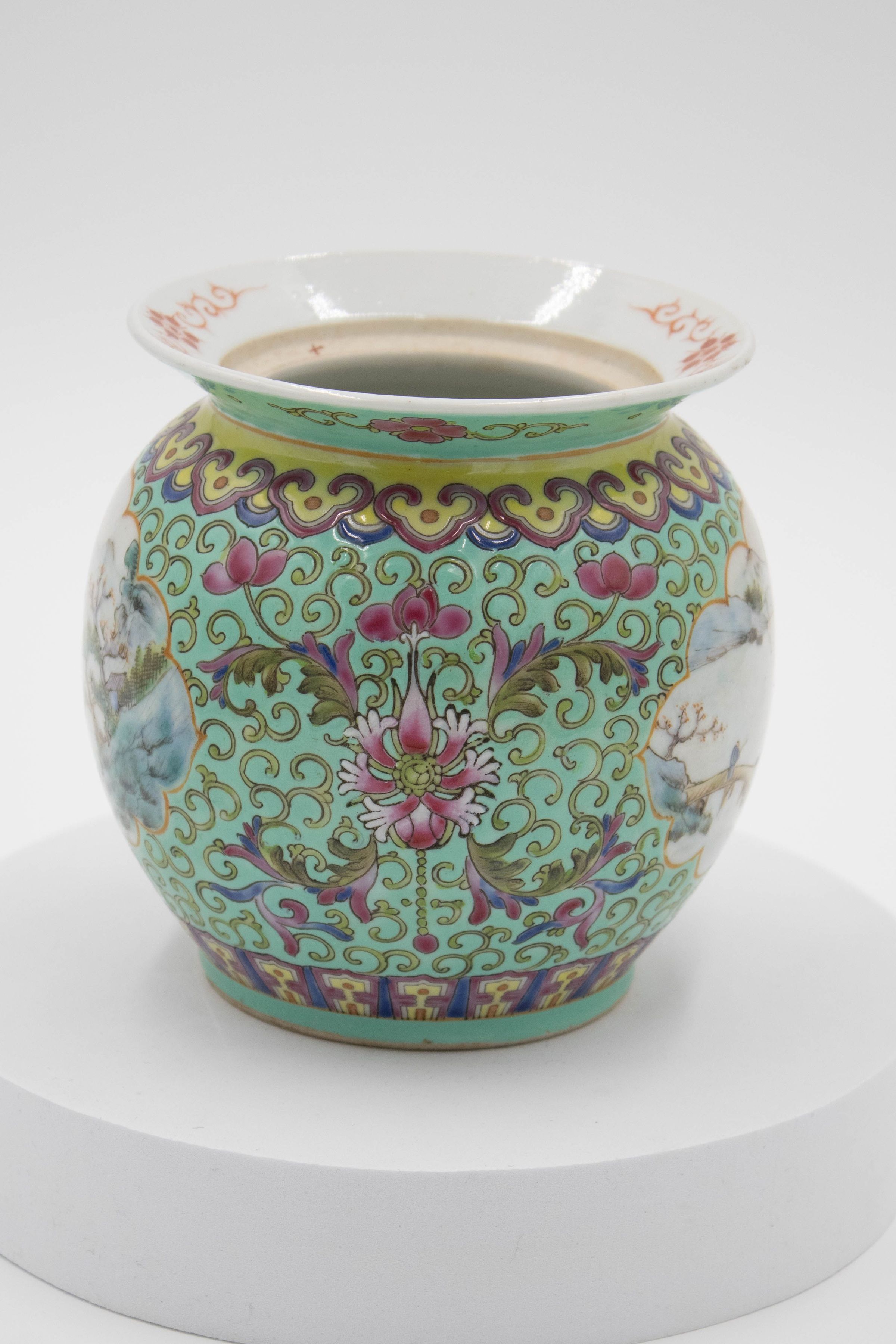 White Porcelain Jar Painted with Mint Green Hong Kong SceneEntry/Object ID