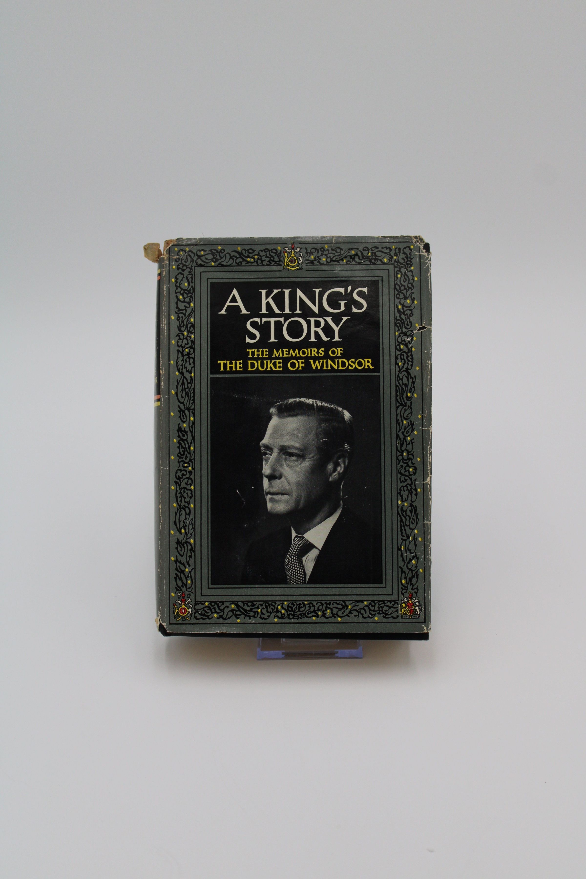 A dark gray-green book with black details around the edge. It has a central photo with Edward Windsor VIII, and the title, "A King's Story: The Memoirs of the Duke of Windsor" in white and yellow text.
