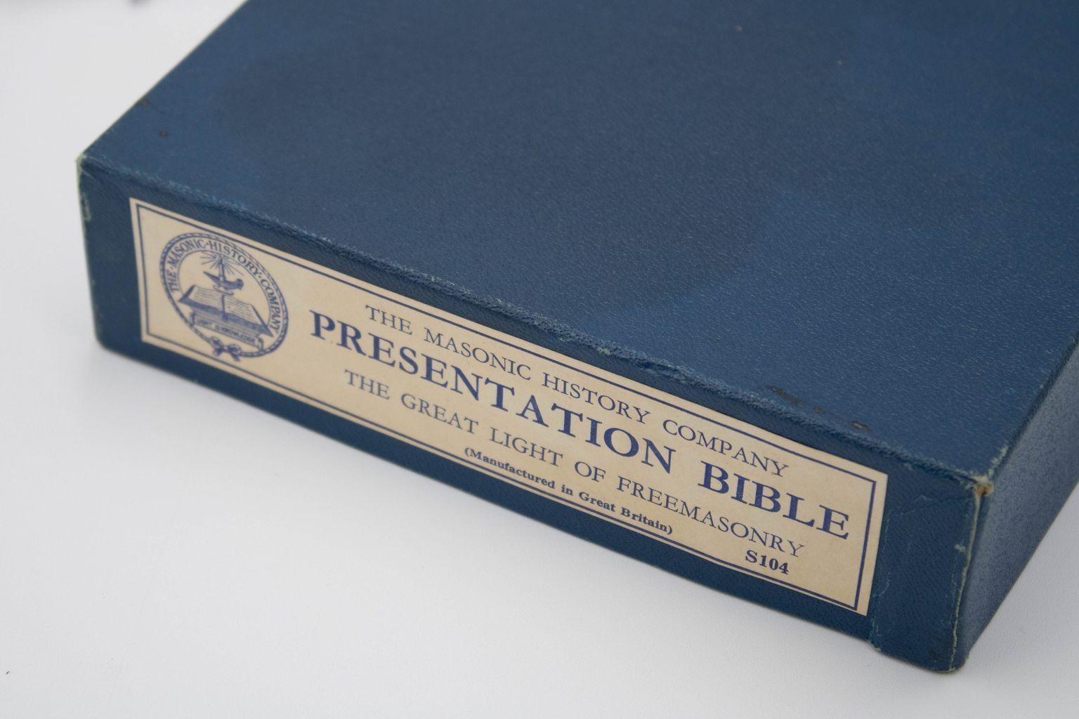 Blue Leather Masonic Presentation Bible and BoxEntry/Object ID