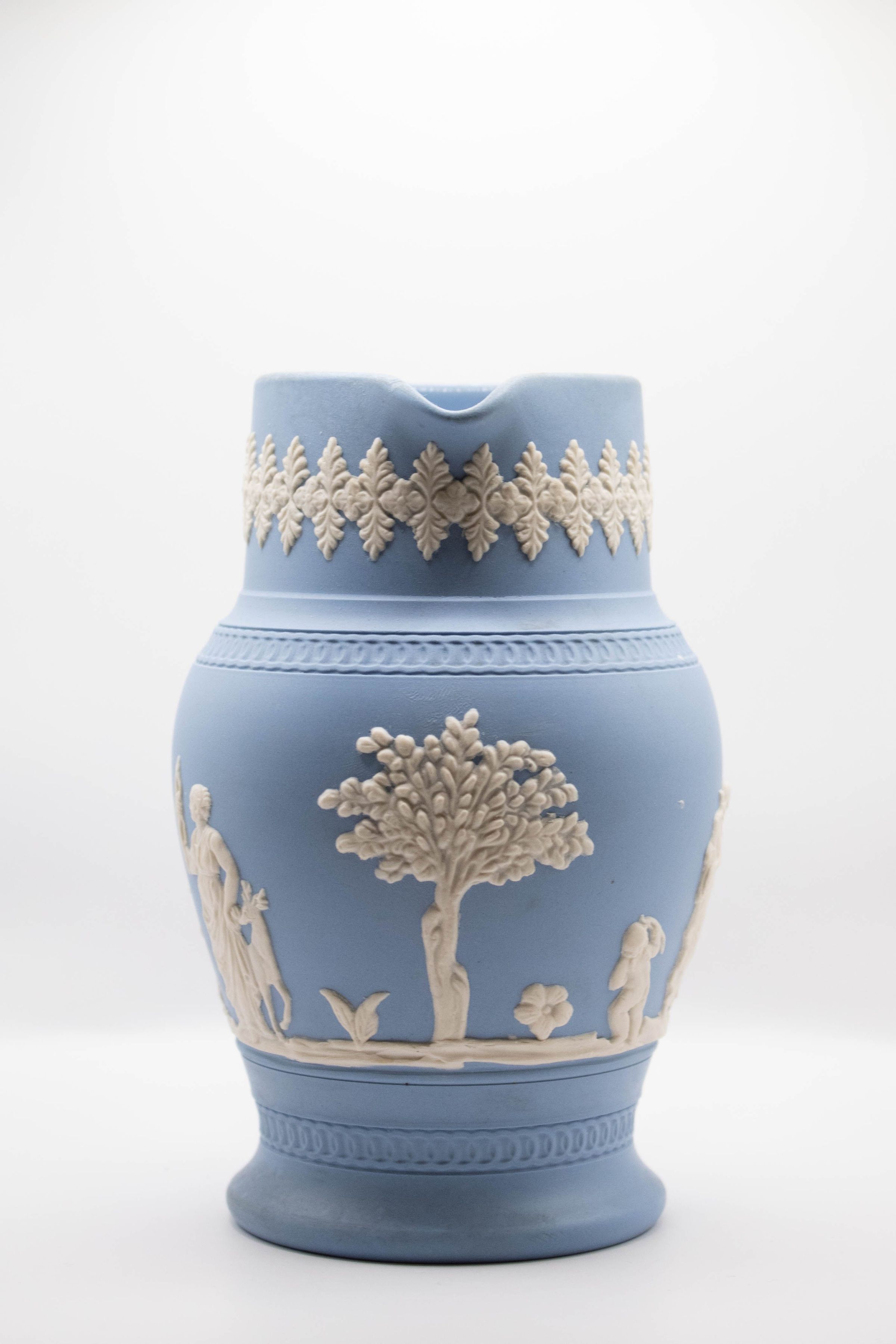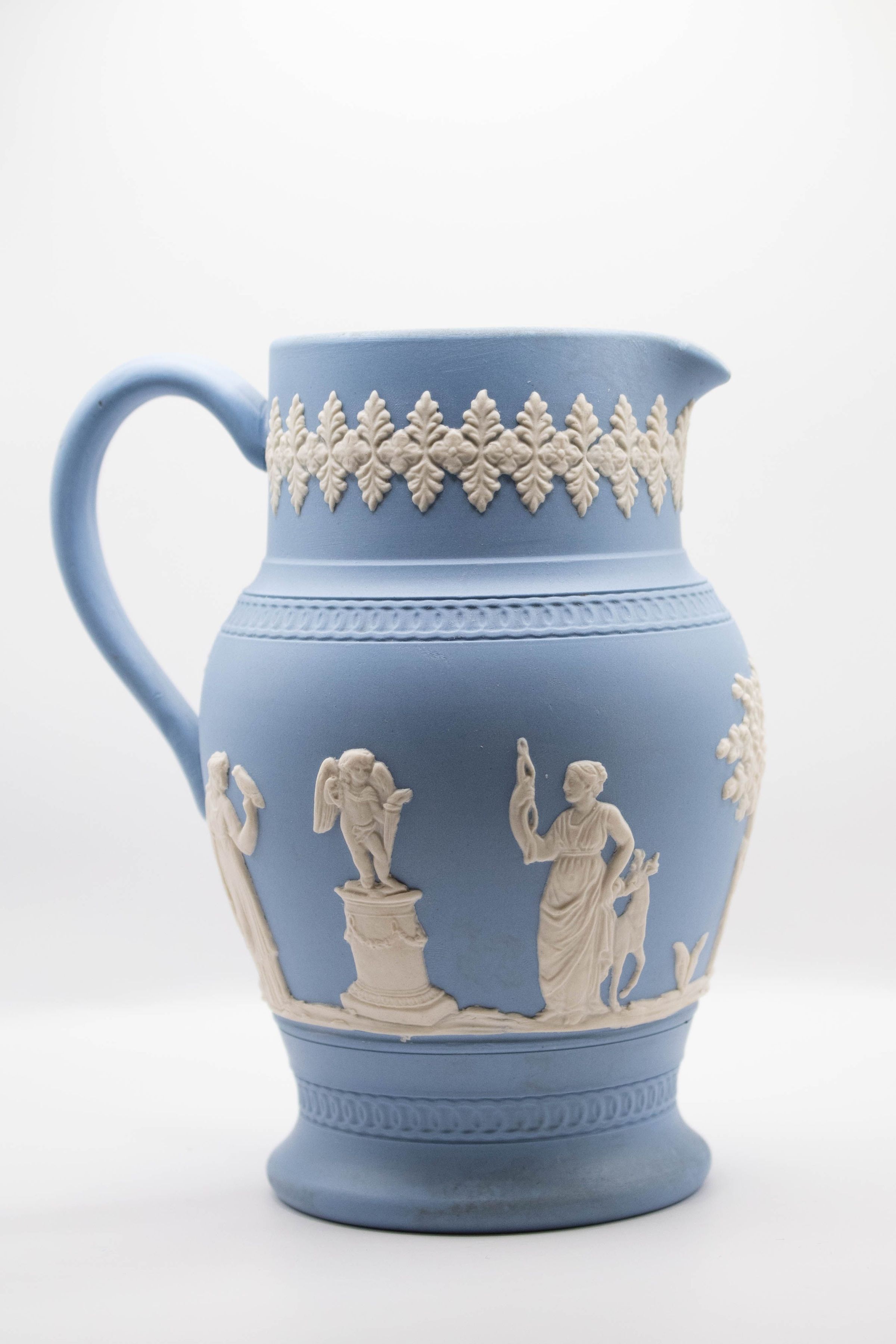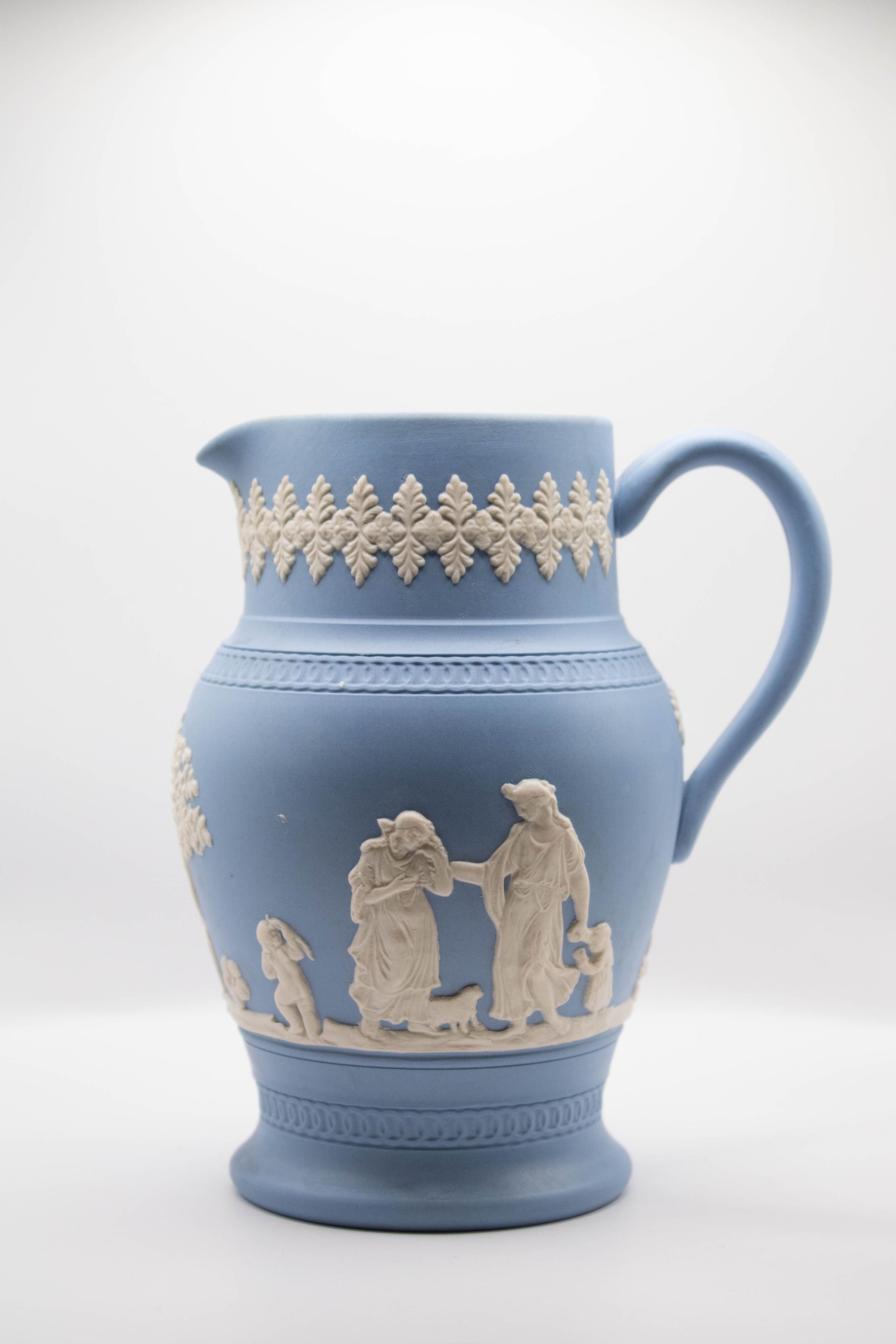 Blue Wedgwood Jasperware Pitcher with White FiguresEntry/Object ID