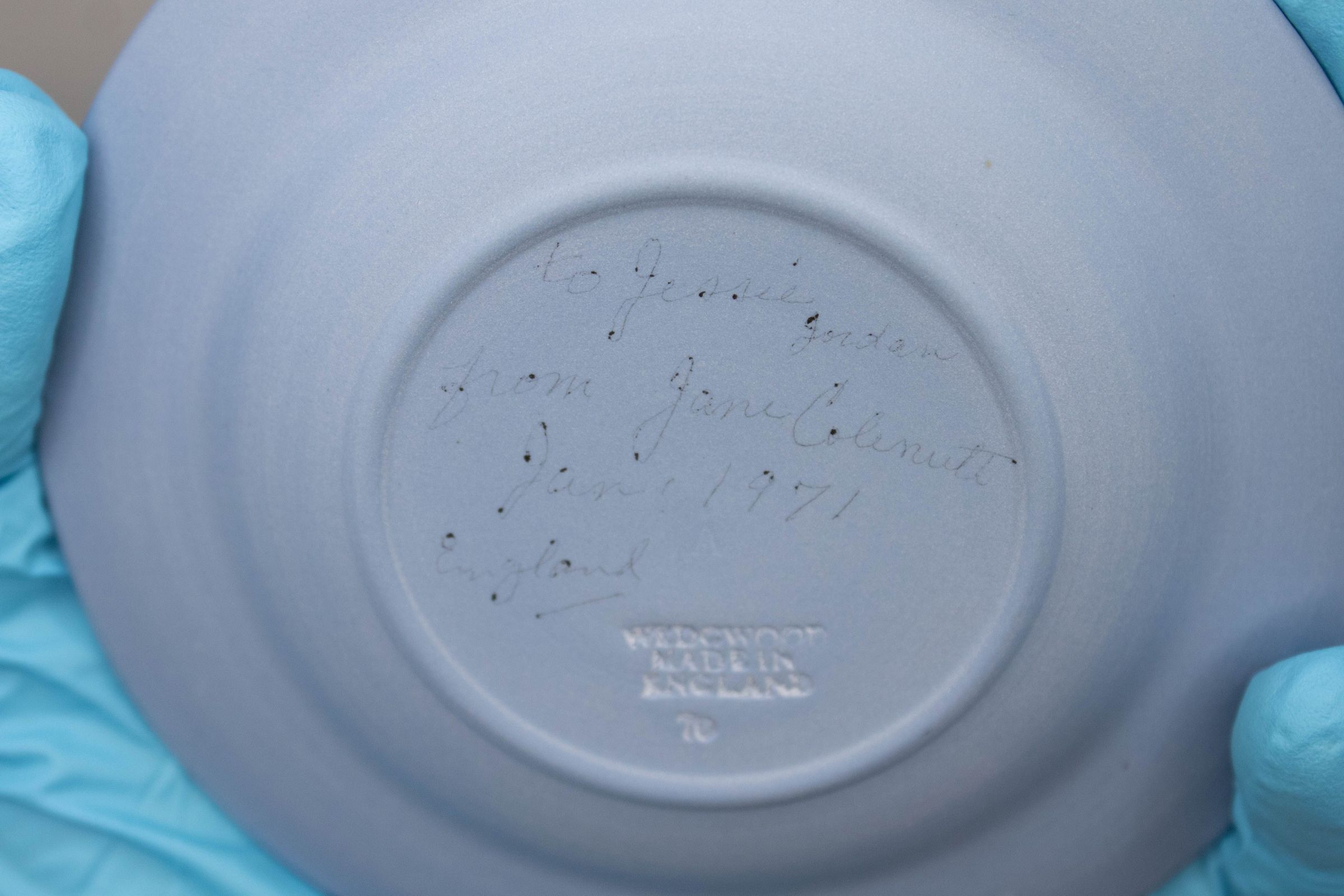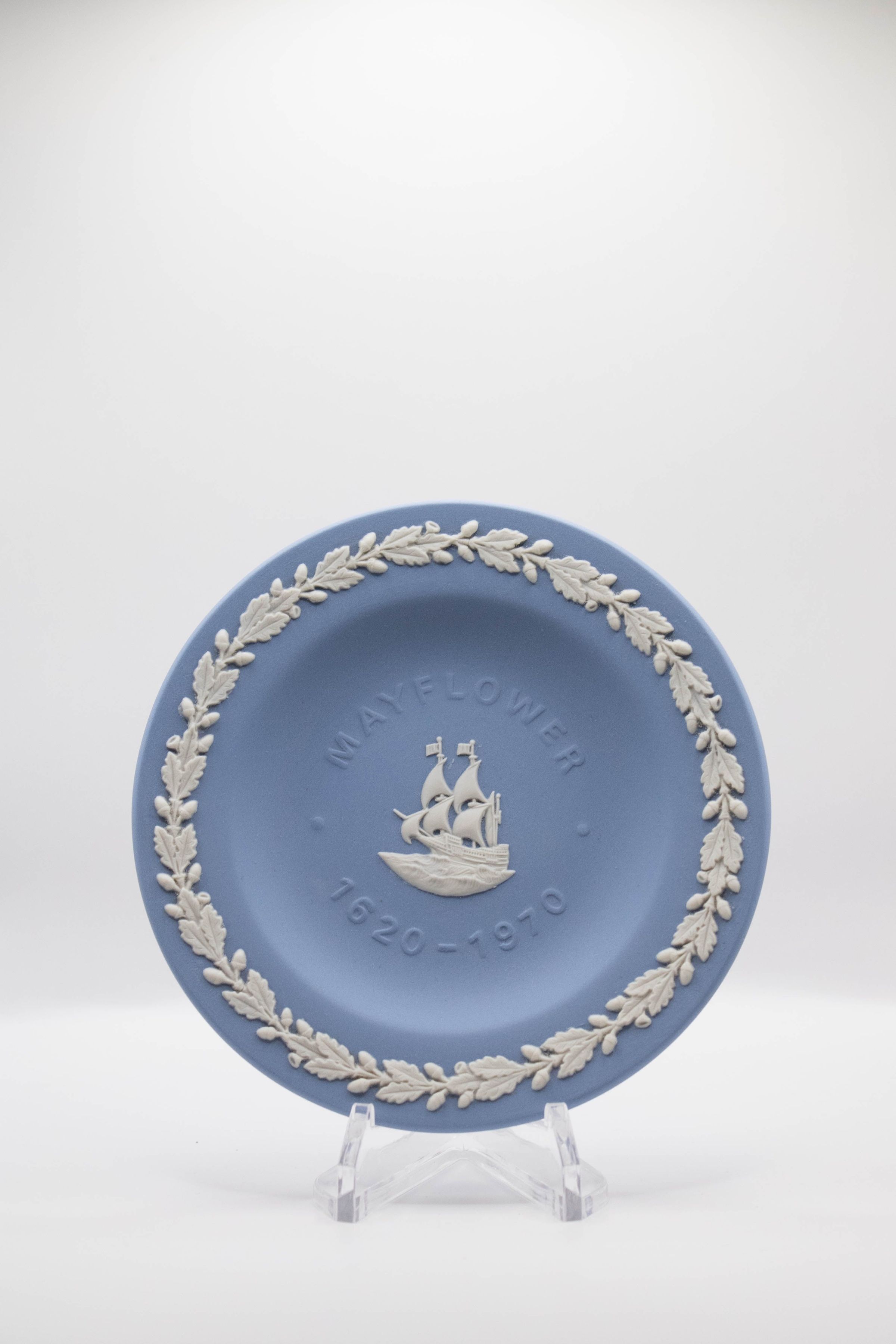 Wedgwood blue round commemorative dish of the Mayflower 1620-1970.Context
