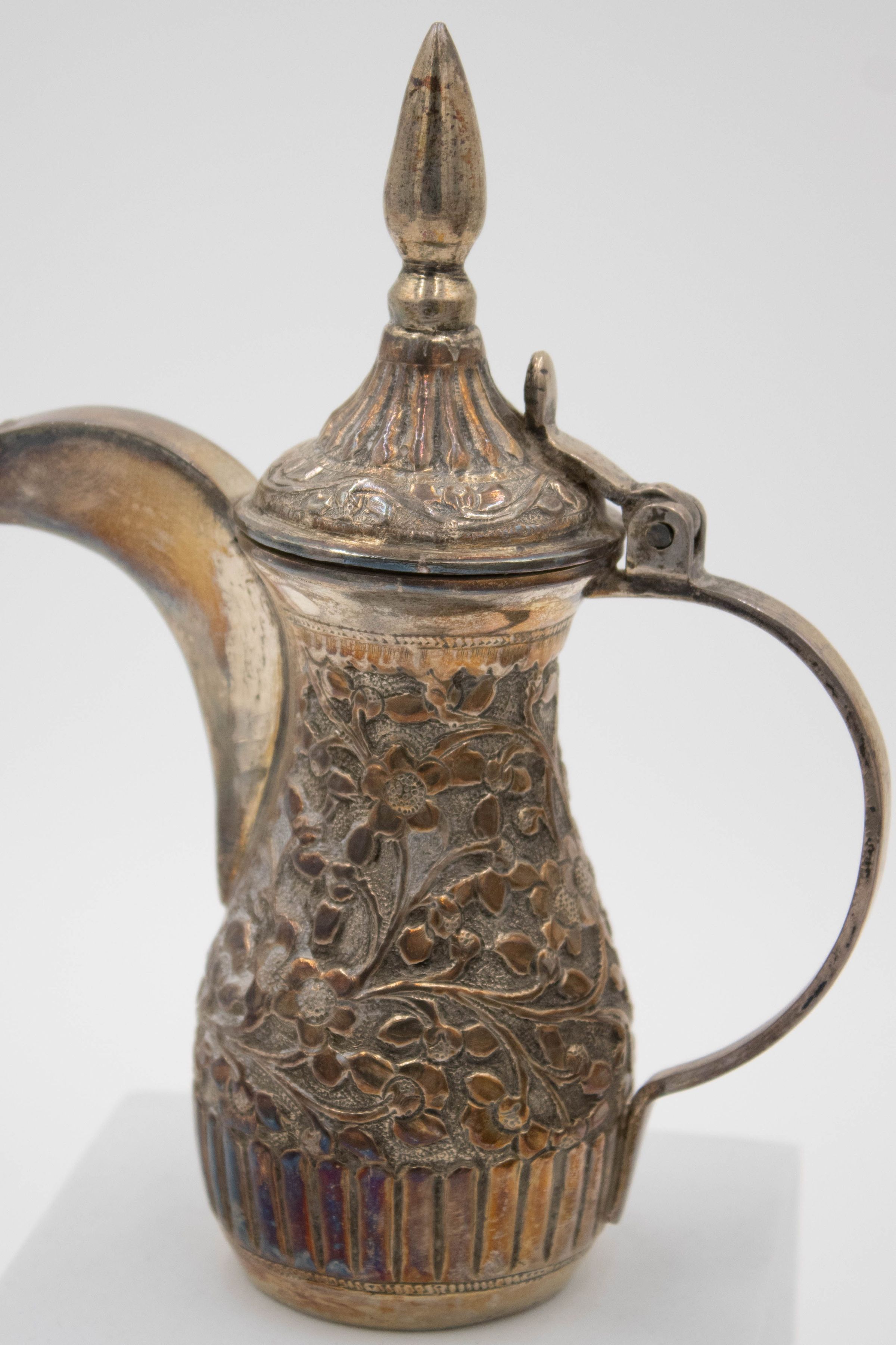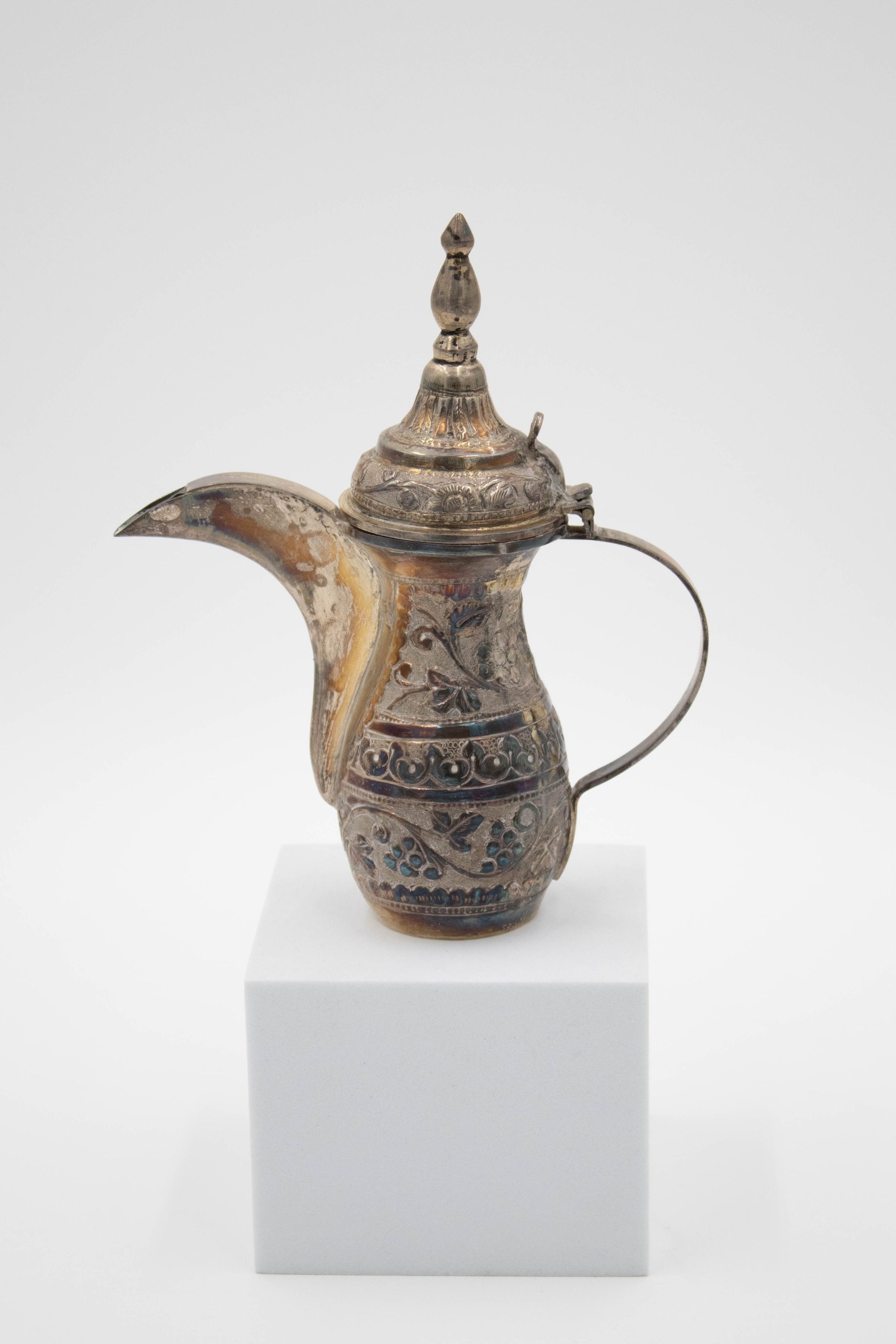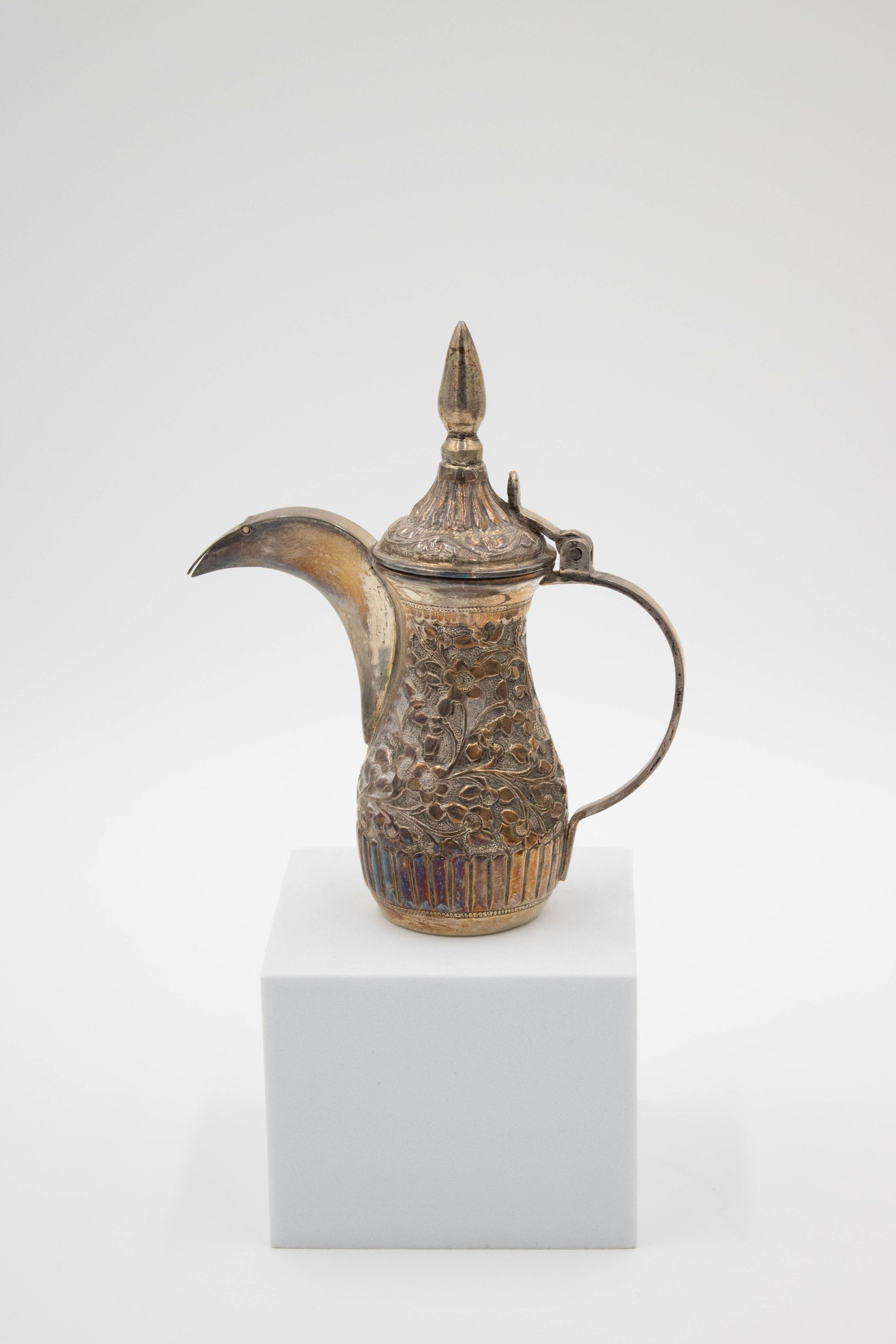 The coffee service was gifted to Mr. and Mrs. Jordan by Sheikh Ahmad Al-Jaber Al-Sabah, the tenth ruler of the Sheikhdom of Kuwait. Sheikh Ahmad Al-Jaber Al-reigned from 1921-1950, making him the longest reining ruler of Kuwait having reigned for almost 29 years. During his reign, he was the lead cavalry commander, founder of the military of Kuwait, and Directorate of Public Security Force. The coffee service was presented to the Jordans during their first visit to Kuwait.Ethnography