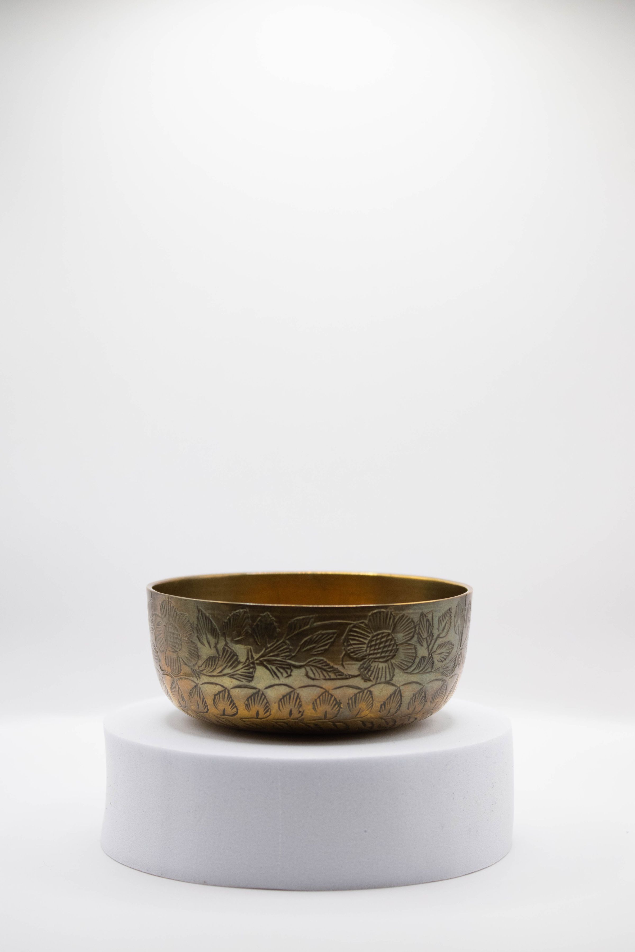 Brass Finger Bowl with Engraved Floral and Leaf Design