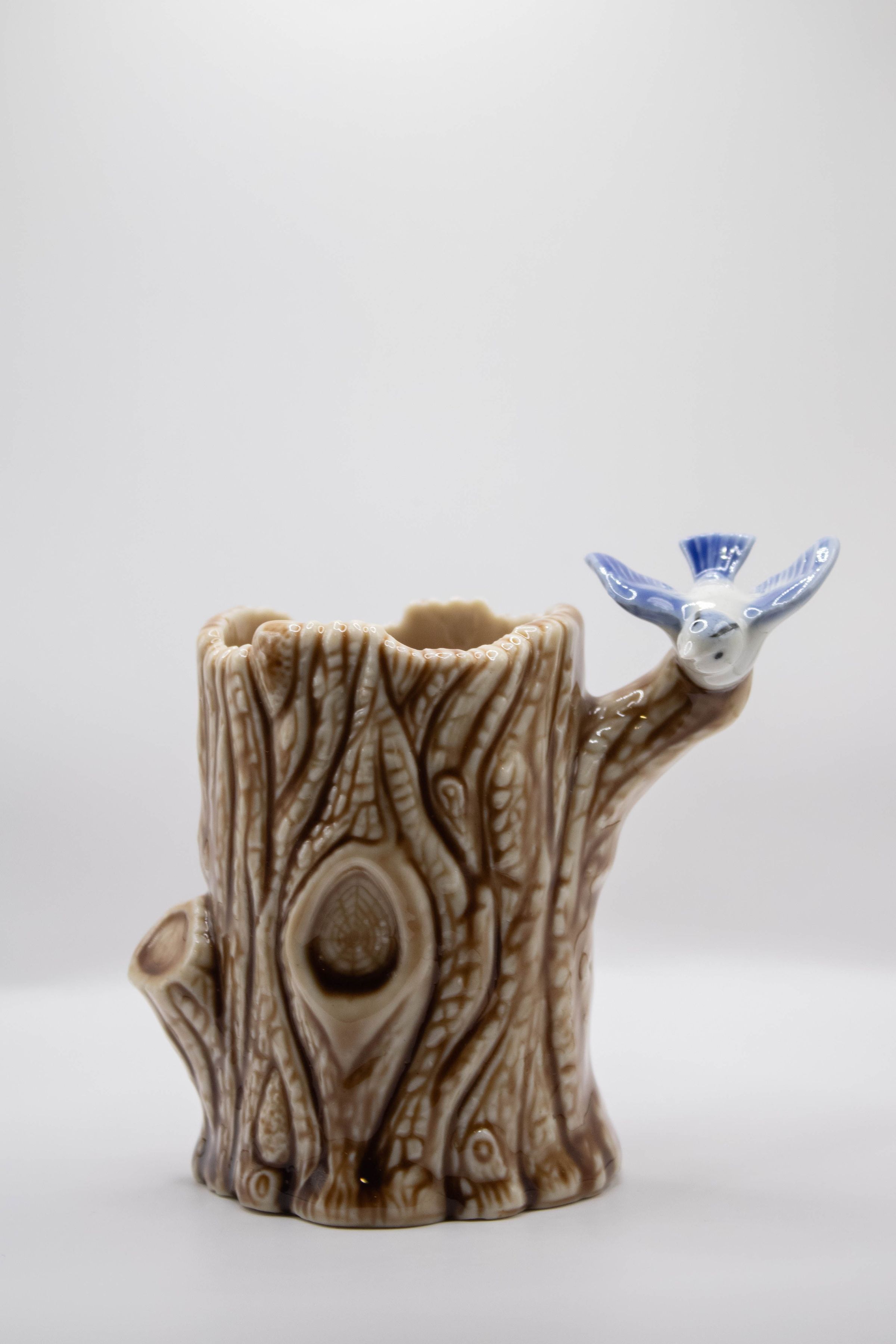 Ceramic Brown Stump with Blue JayEntry/Object ID