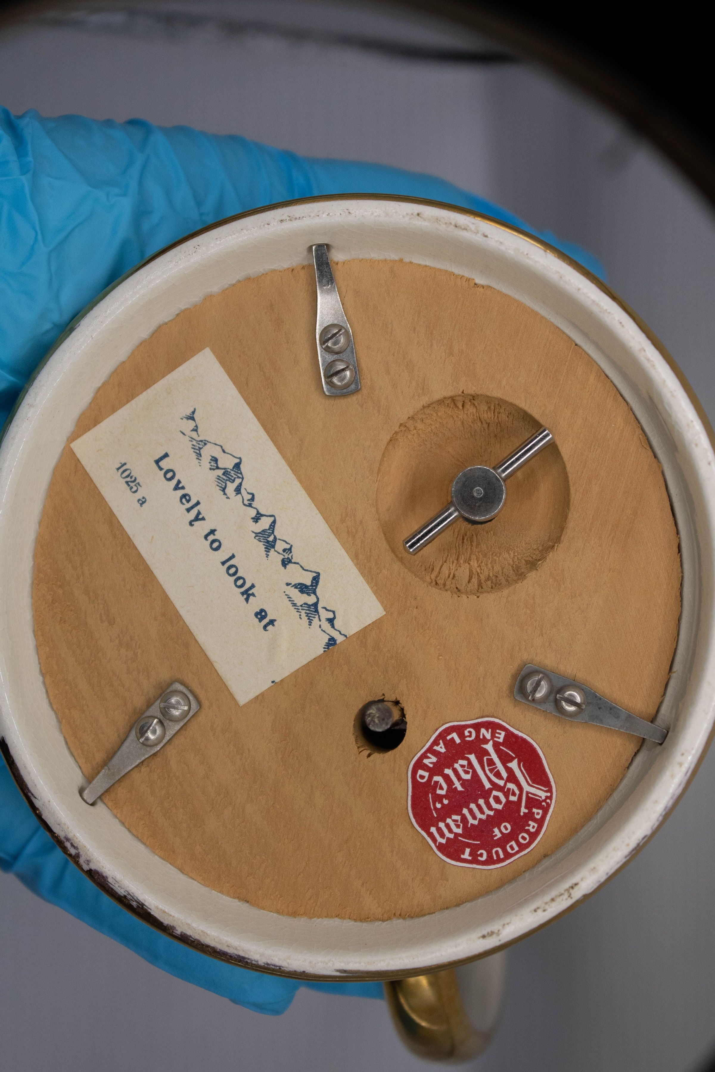 Ceramic Mug-Shaped Music Box Decorated with Gold Detail and Scene of a StreamEntry/Object ID