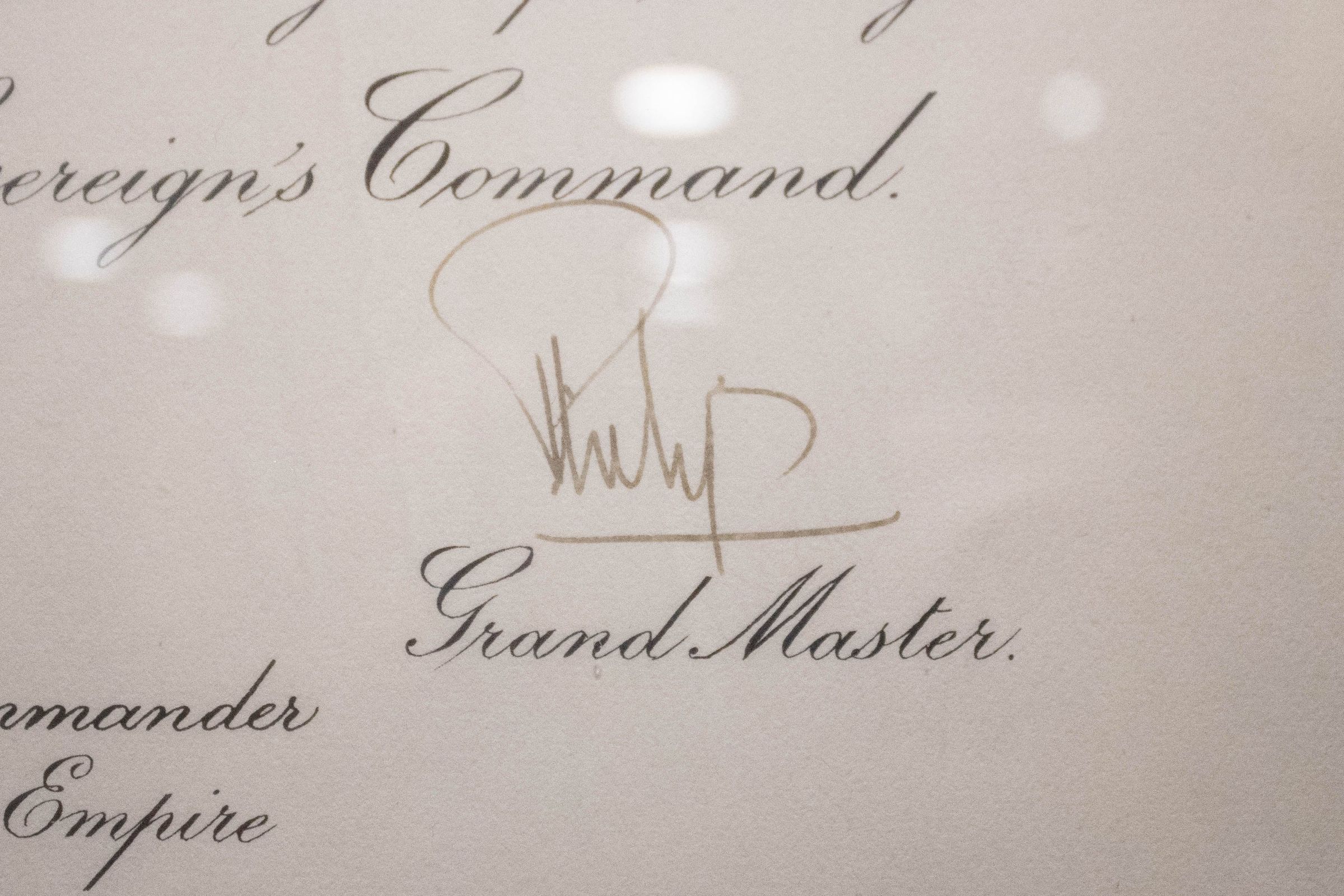 Certificate for LTJ Honorary Knight Commander of the Order of the British EmpireEntry/Object ID