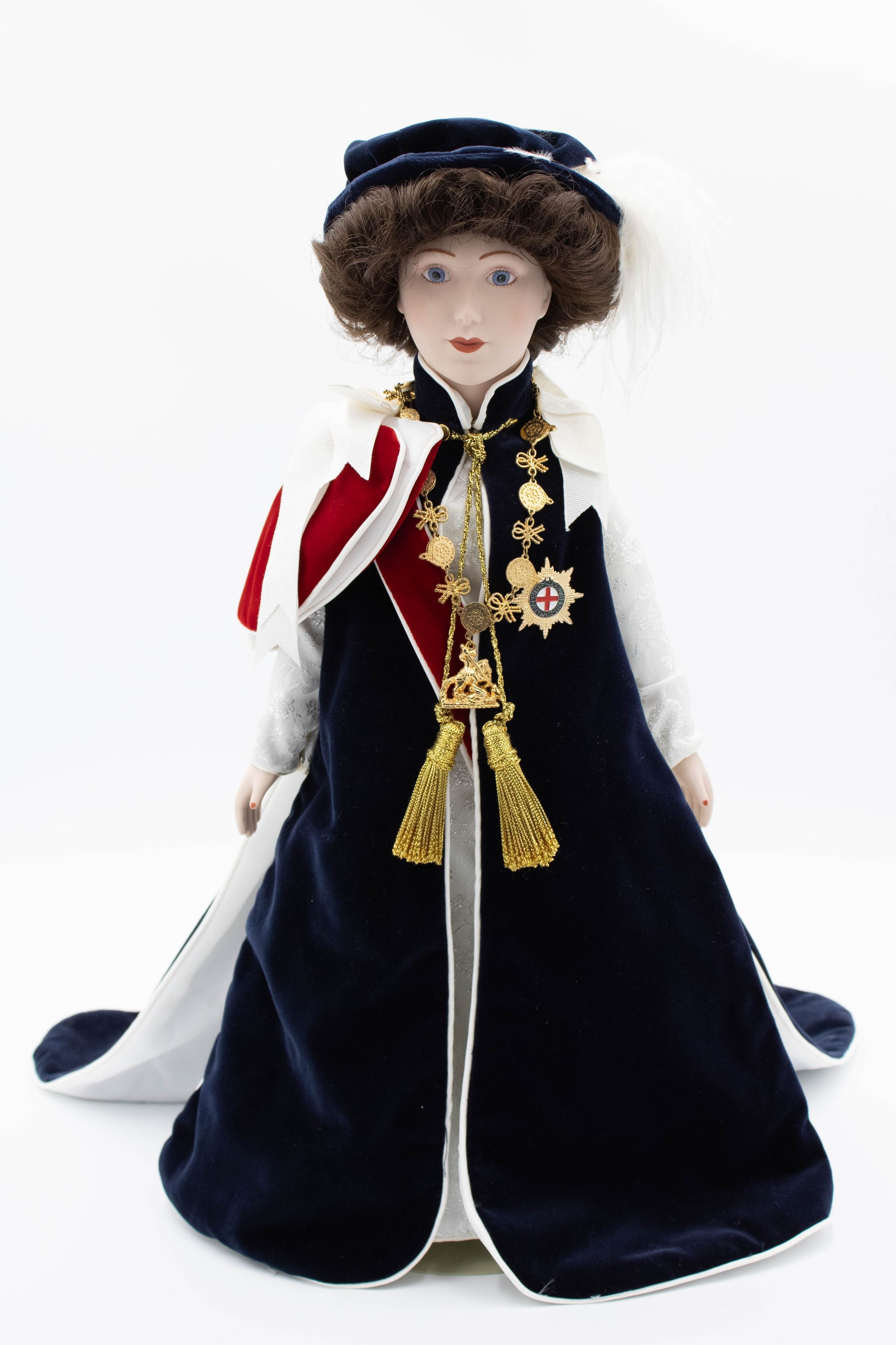China Franklin Heirloom Queen Elizabeth II doll; c. 1982-1985.Context
