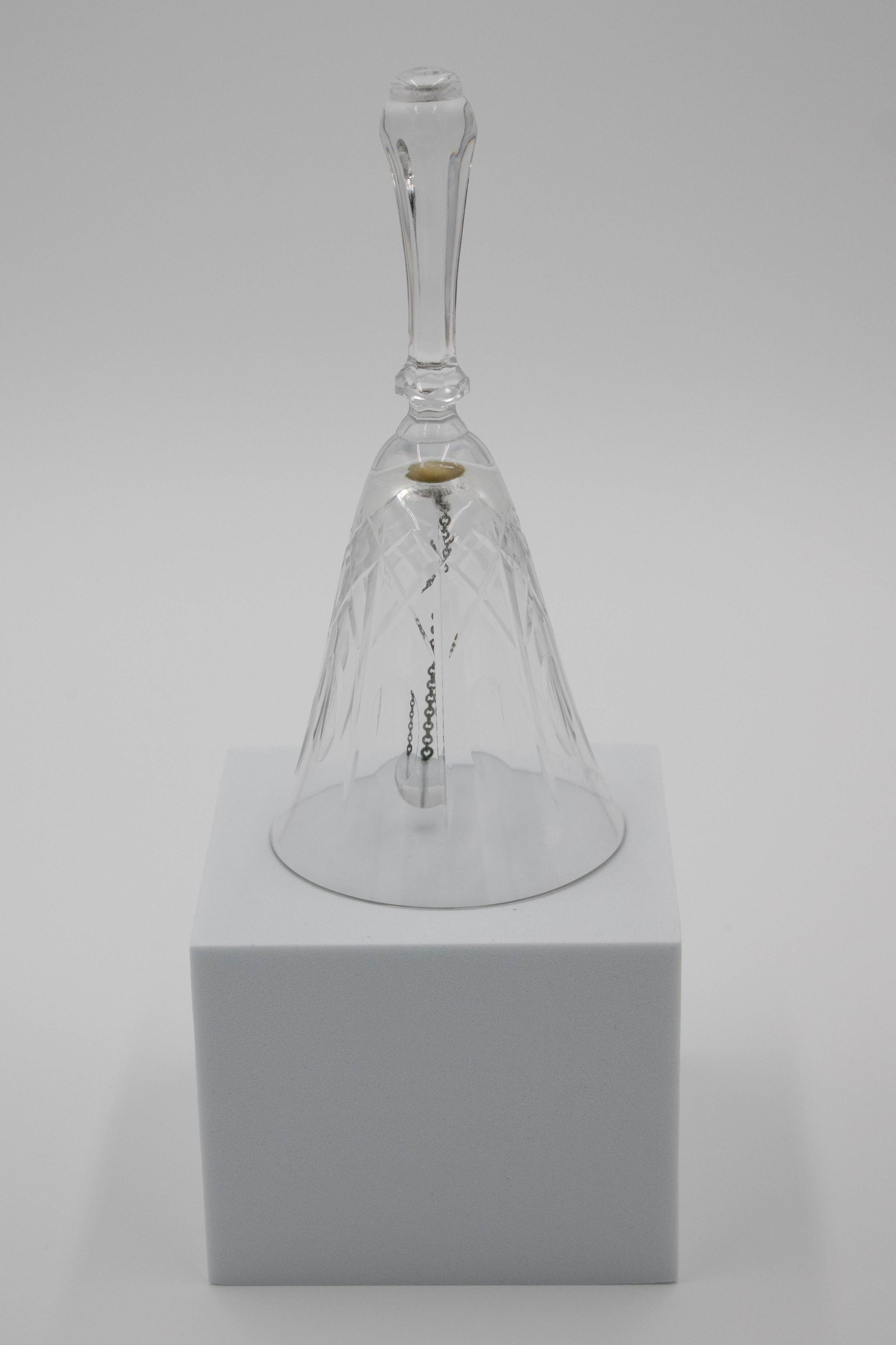 The image depicts a crystal dinner bell featuring intricate geometric detailing.