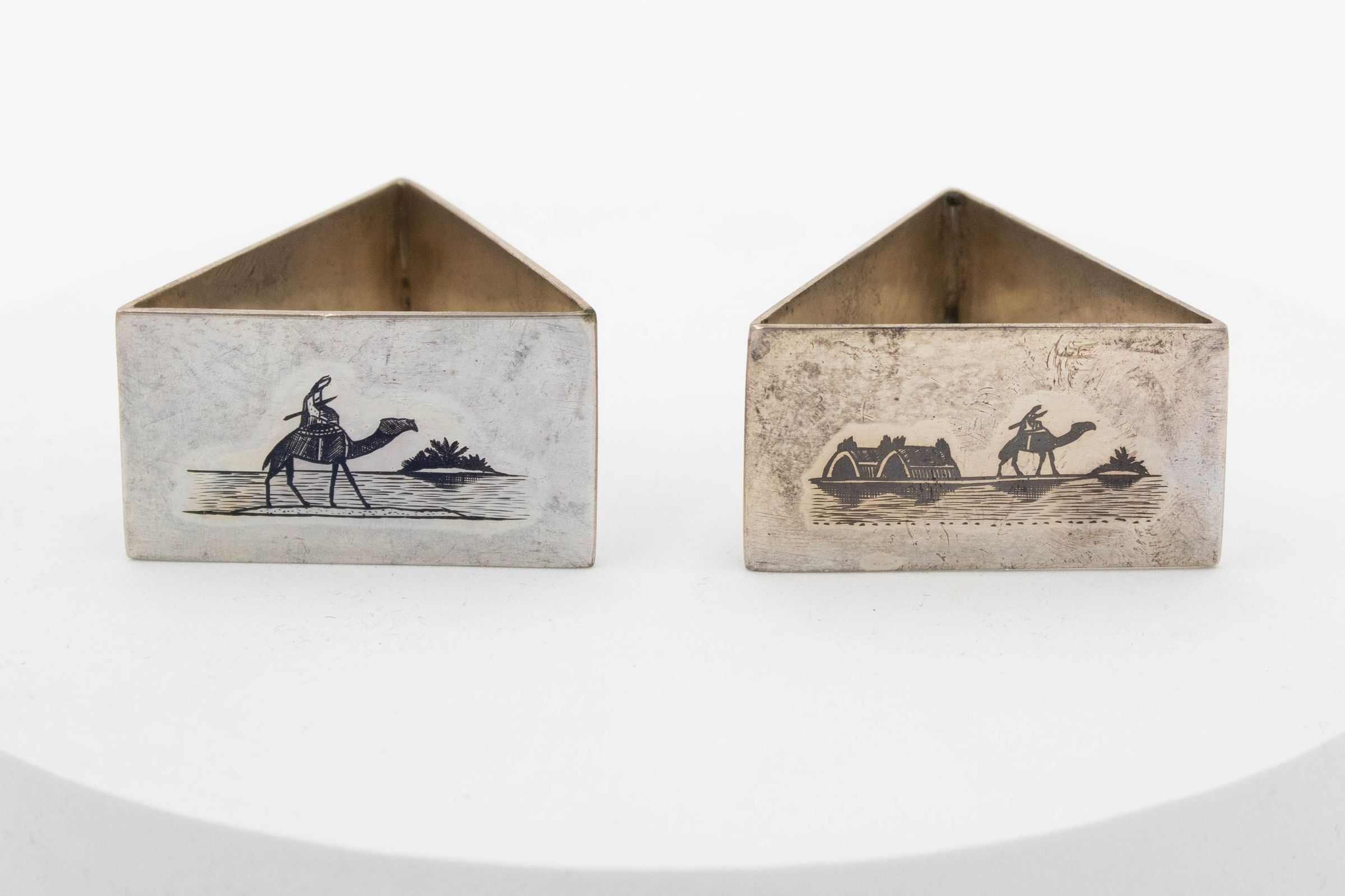 Pair of Triangular Metal Napkin Holders Engraved with Kuwaiti ScenesEntry/Object ID