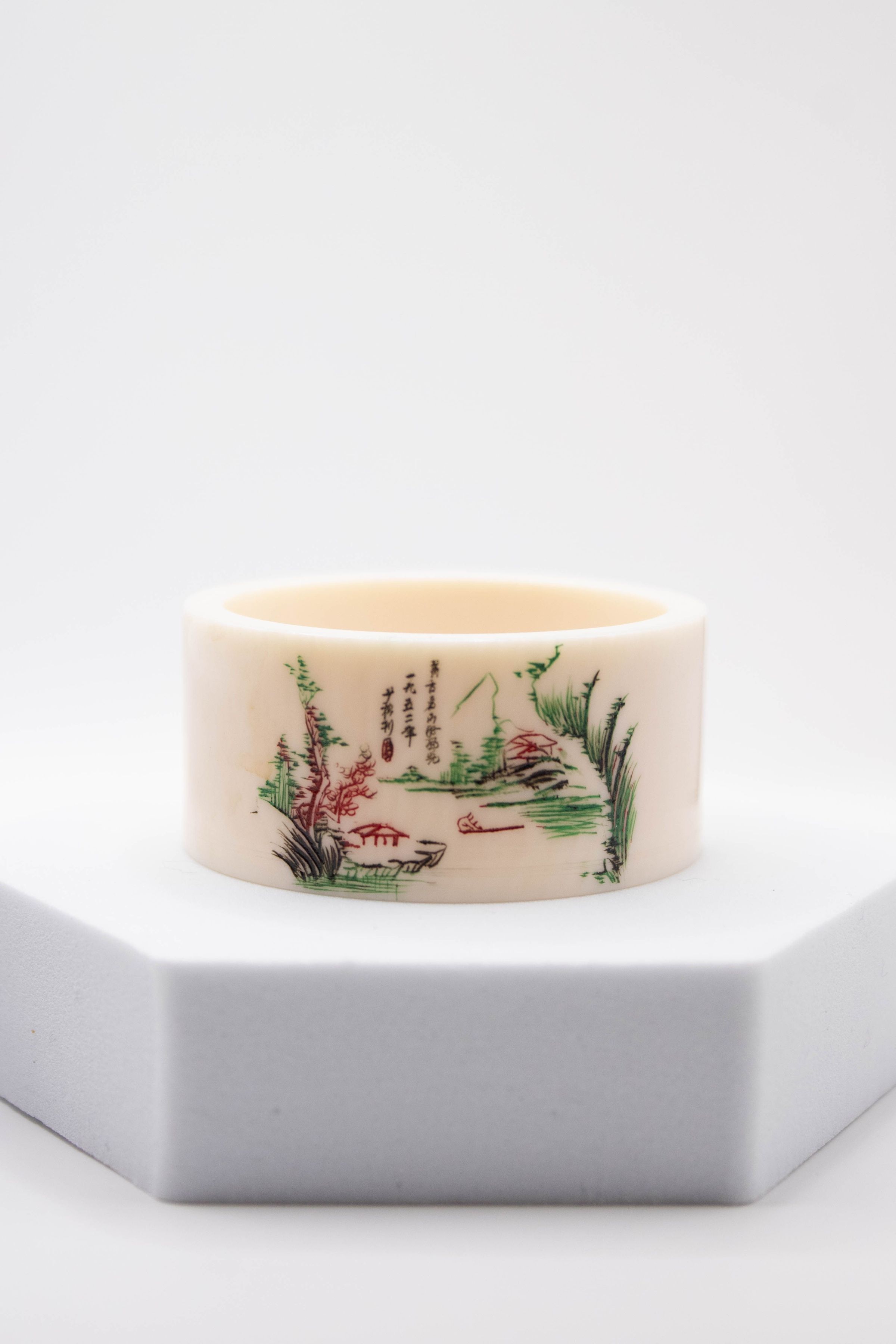 Set of Ivory Chinese Napkin Rings with Painted Garden SceneEntry/Object ID