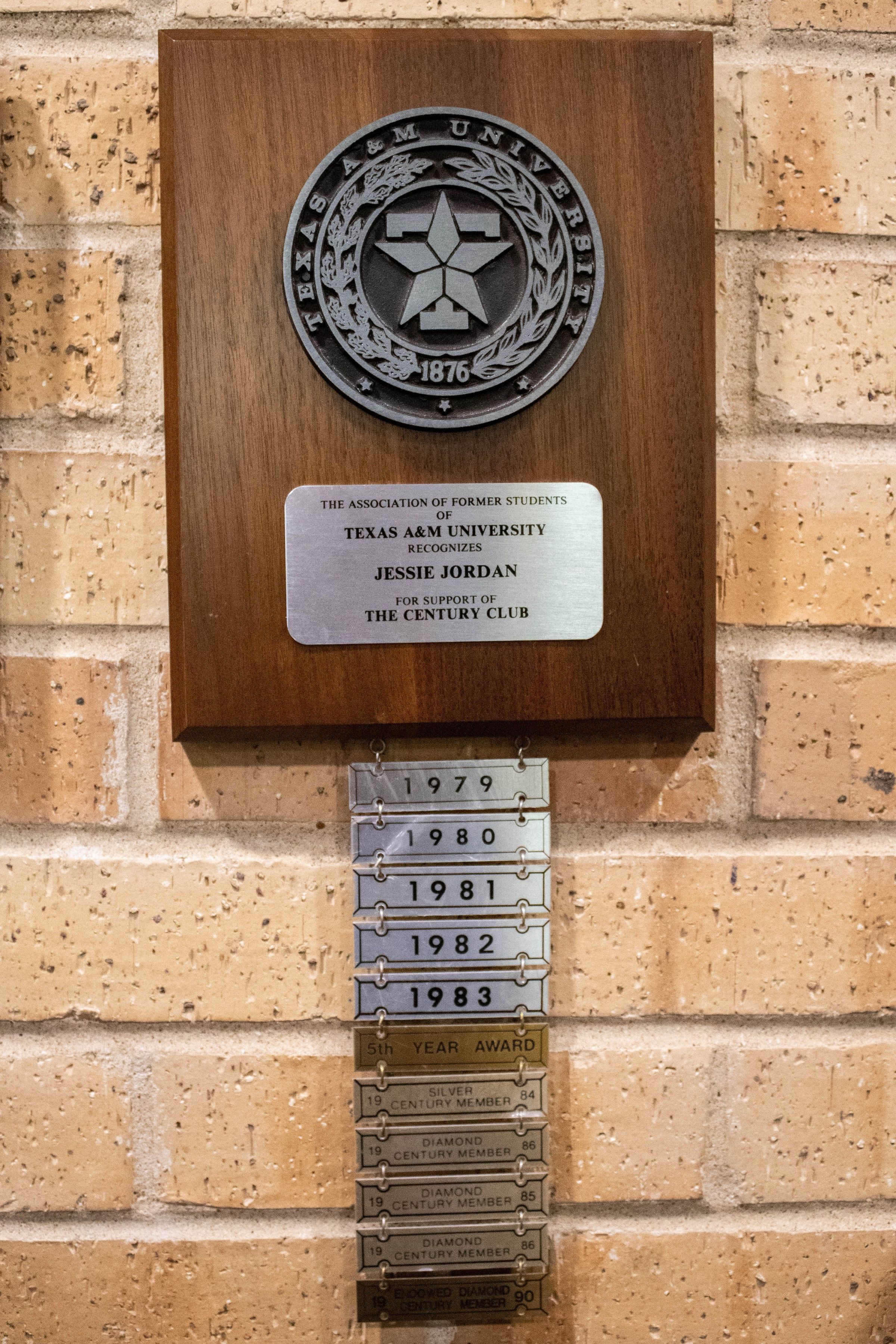 Three membership plaques given to Leland T. Jordan and Jessie Jordan for their donations to the Texas A&M Association of Former Students.Ethnography