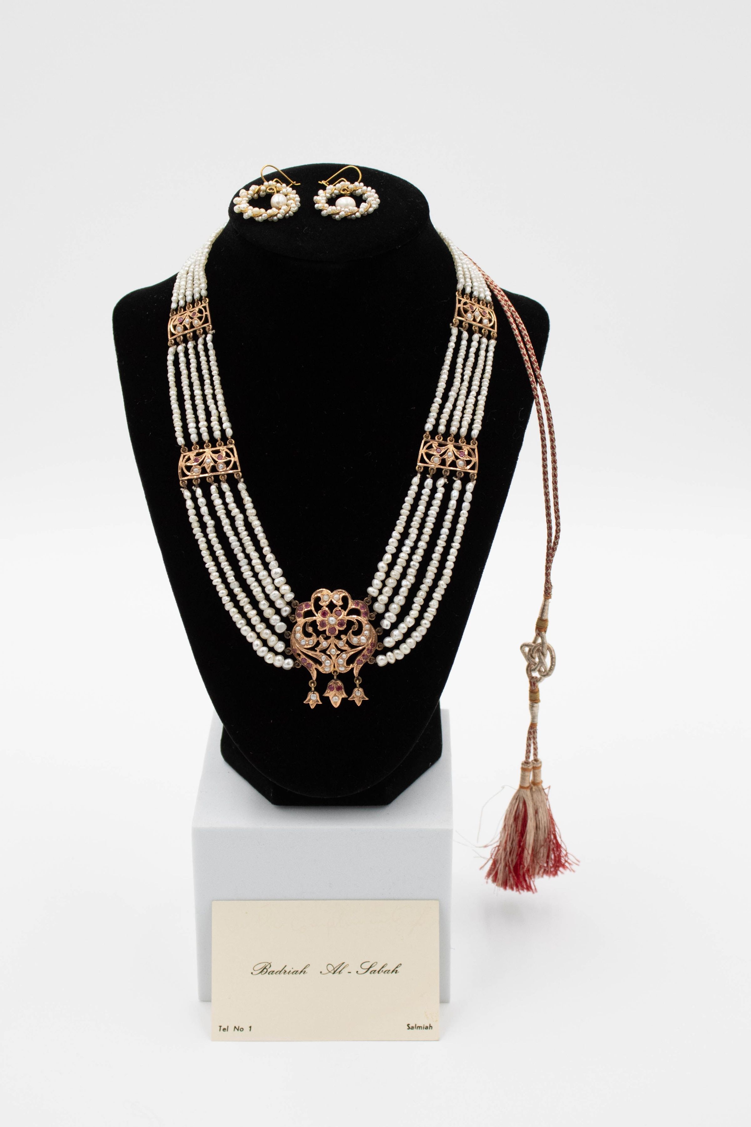 The necklace and matching earrings were was gifted to Mrs. Jessie Jordan from Her Highness Sheikha Badriah Al-Ahmad Al-Jaber Al-Mubarak Al-Sabah, the daughter of His Highness Sheikh Ahmad Al-Jaber Al-Sabah, the 10th ruler of the Sheikhdom of Kuwait from 1921-1950. Her Highness Sheikha Badriah Al-Ahmad Al-Jaber Al-Mubarak Al-Sabah was also the sister to Sheikh Nawaf Al-Ahmad Al-Jaber Al-Sabah, Emir of Kuwait from 2020-2023.