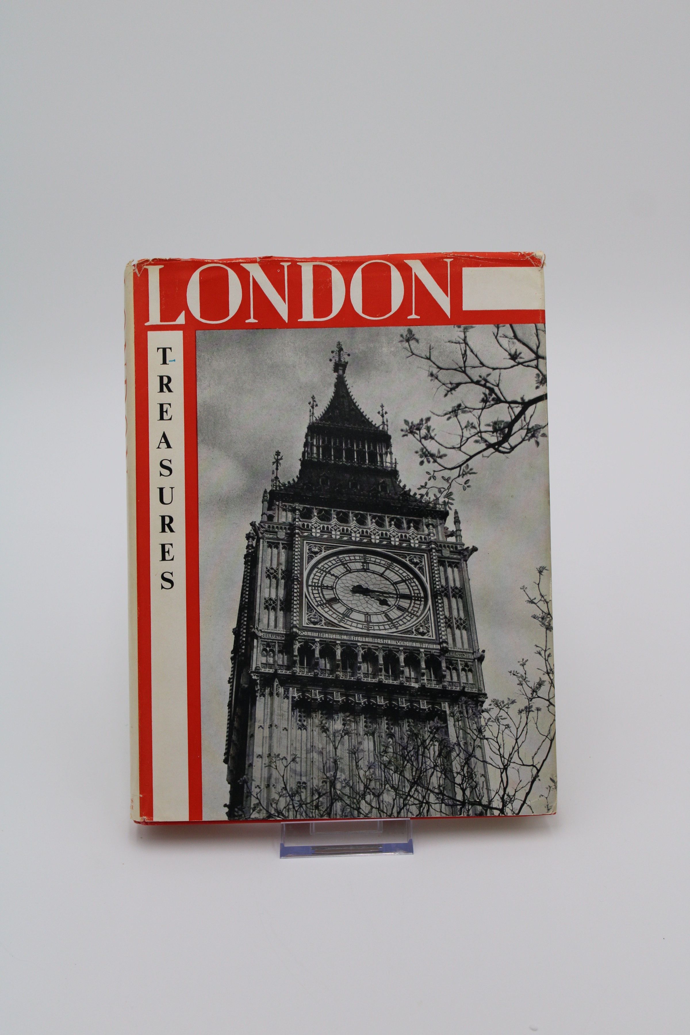 The cover of "London Treasures" has a black-and-white photo of Big Ben in London, England.