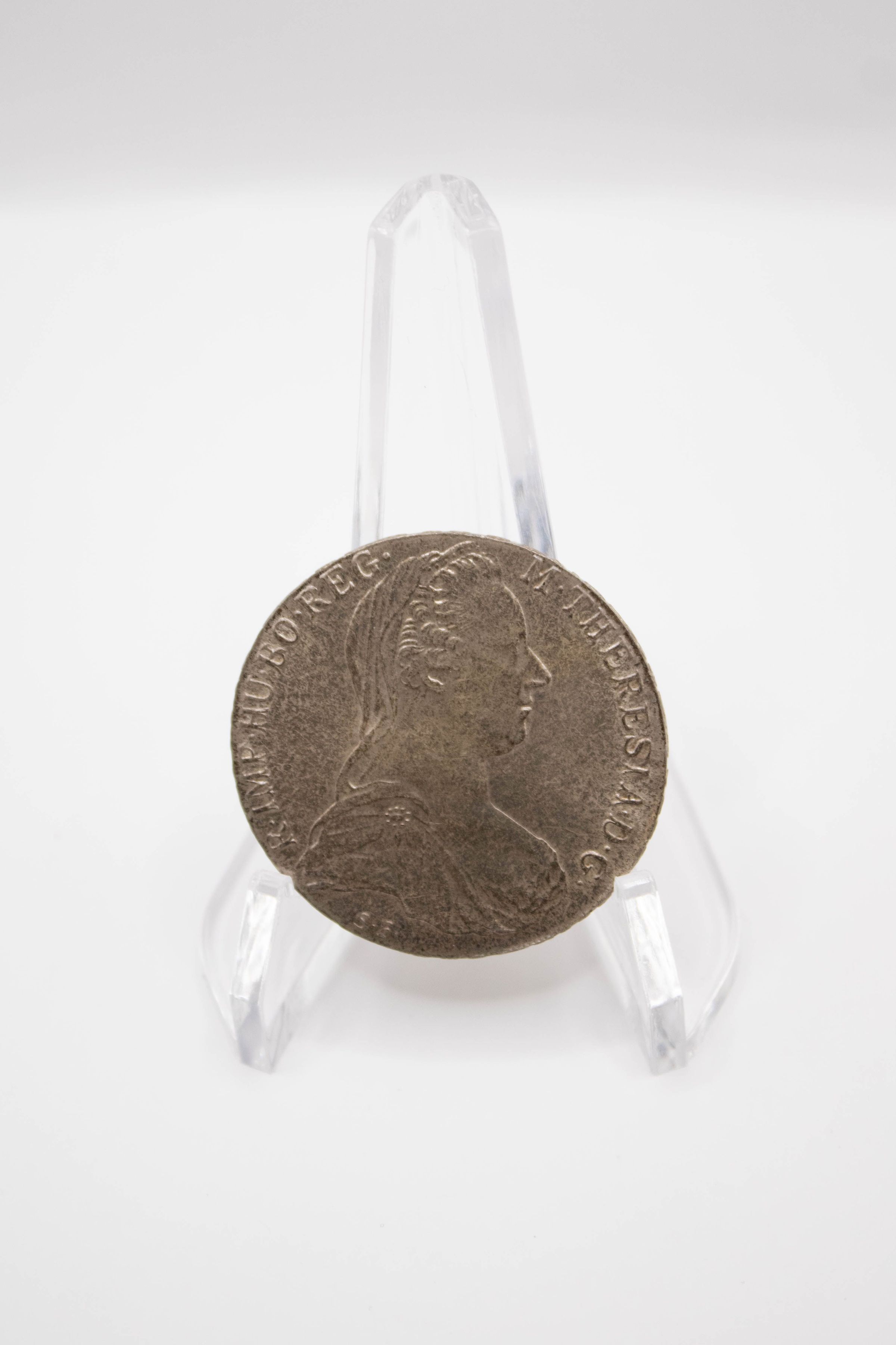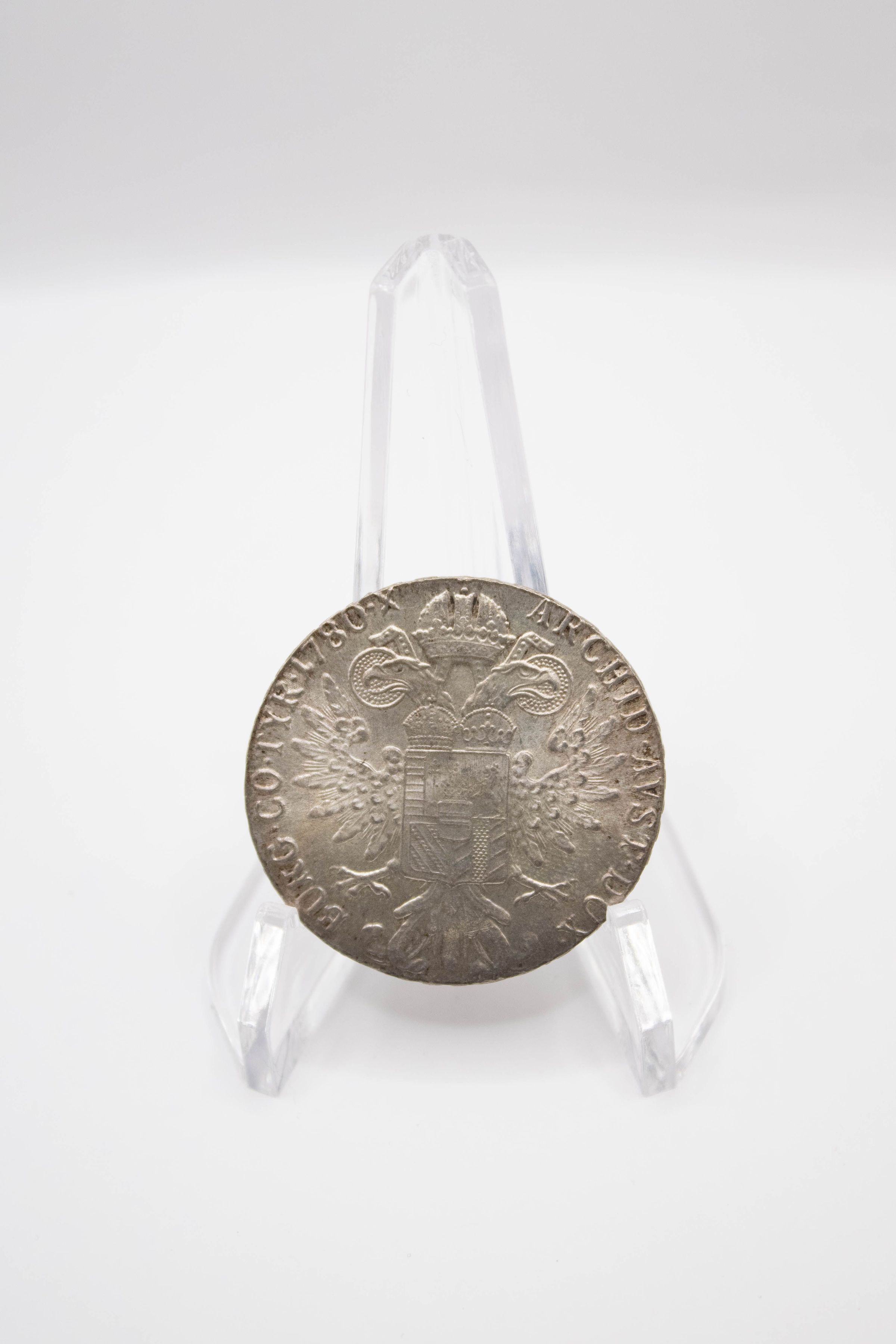 The Maria Theresa 1780 coin displays a side profile.