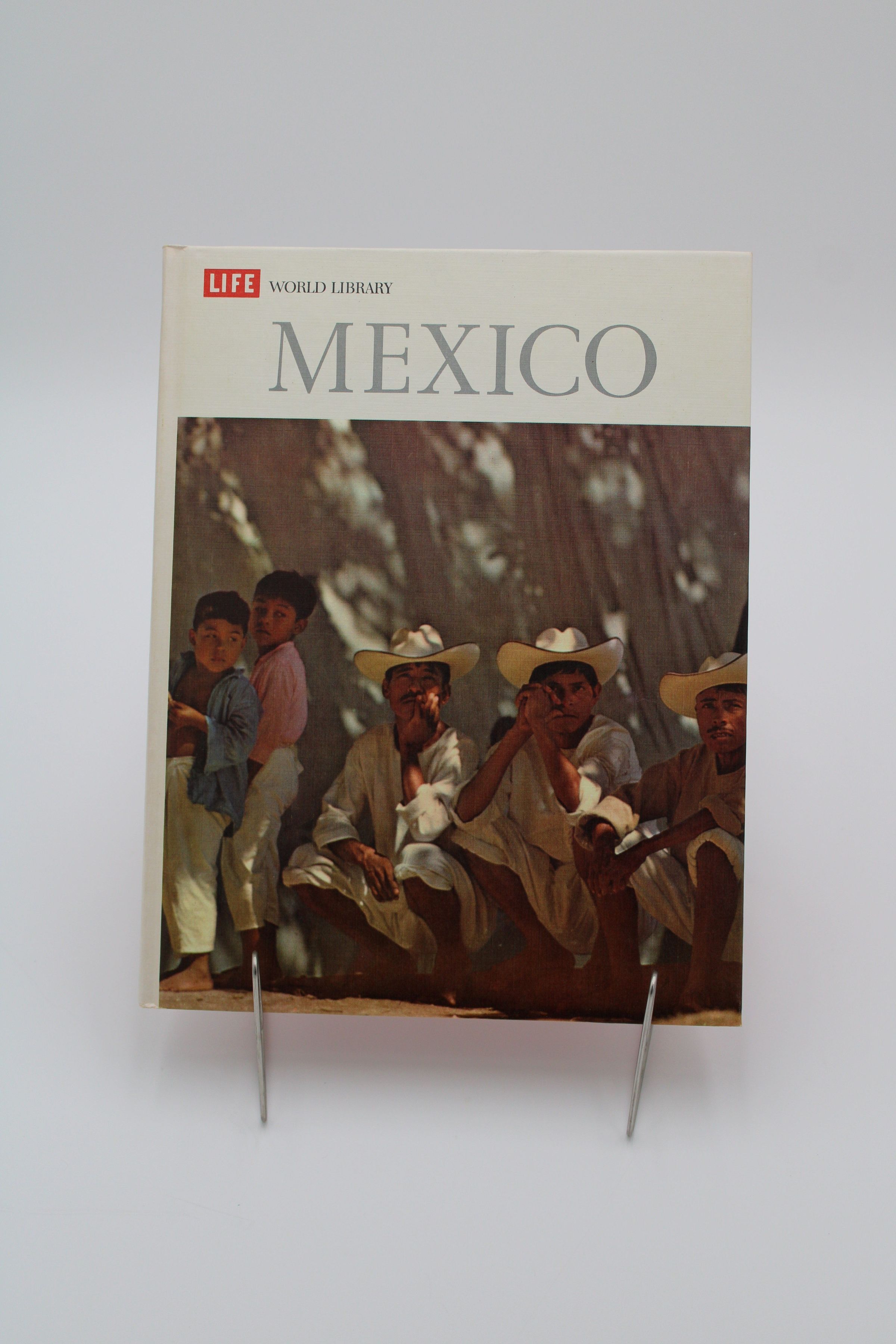 The front cover of "Mexico" features a colored photograph of Mexican laborers squatting against a wall in the shade.