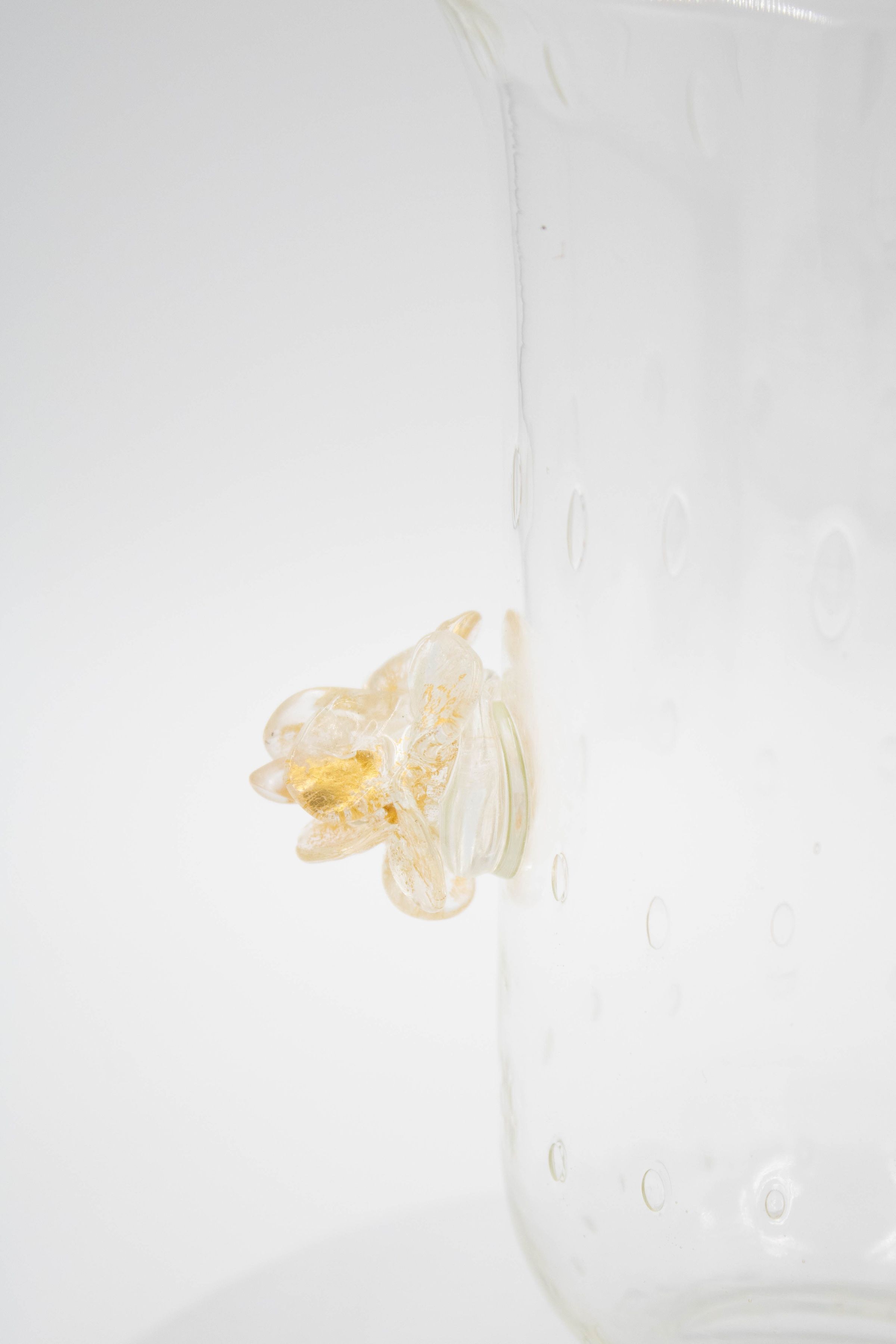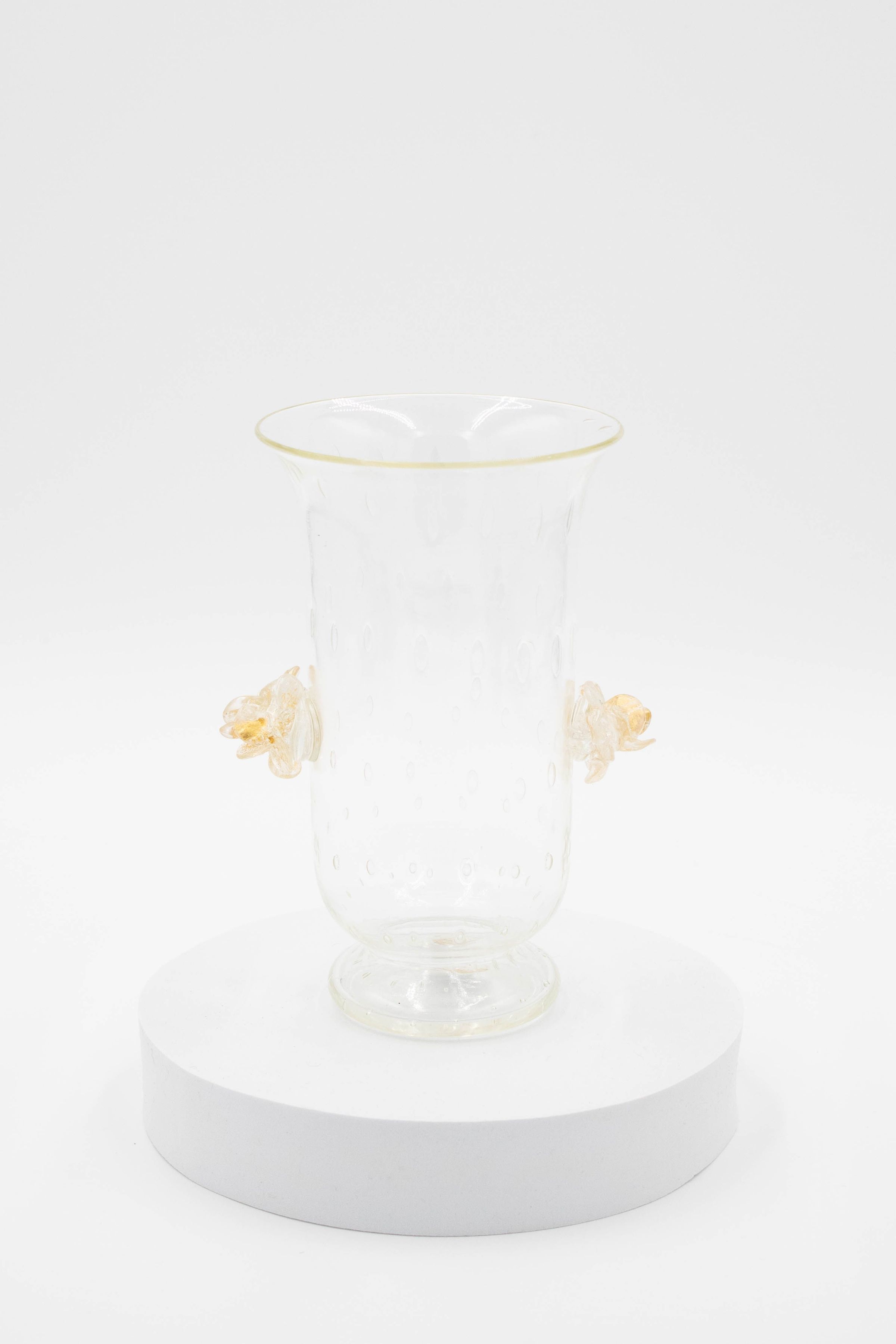 Murano Glass Dimpled Vase with Yellow Rose Shaped Handles and Flared BaseEntry/Object ID