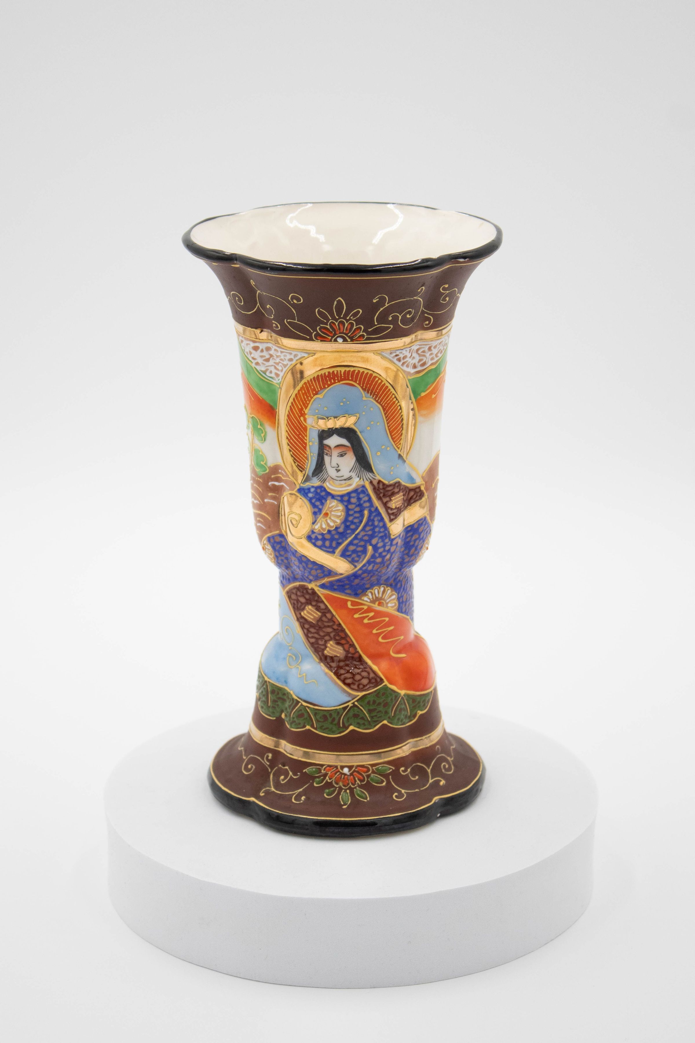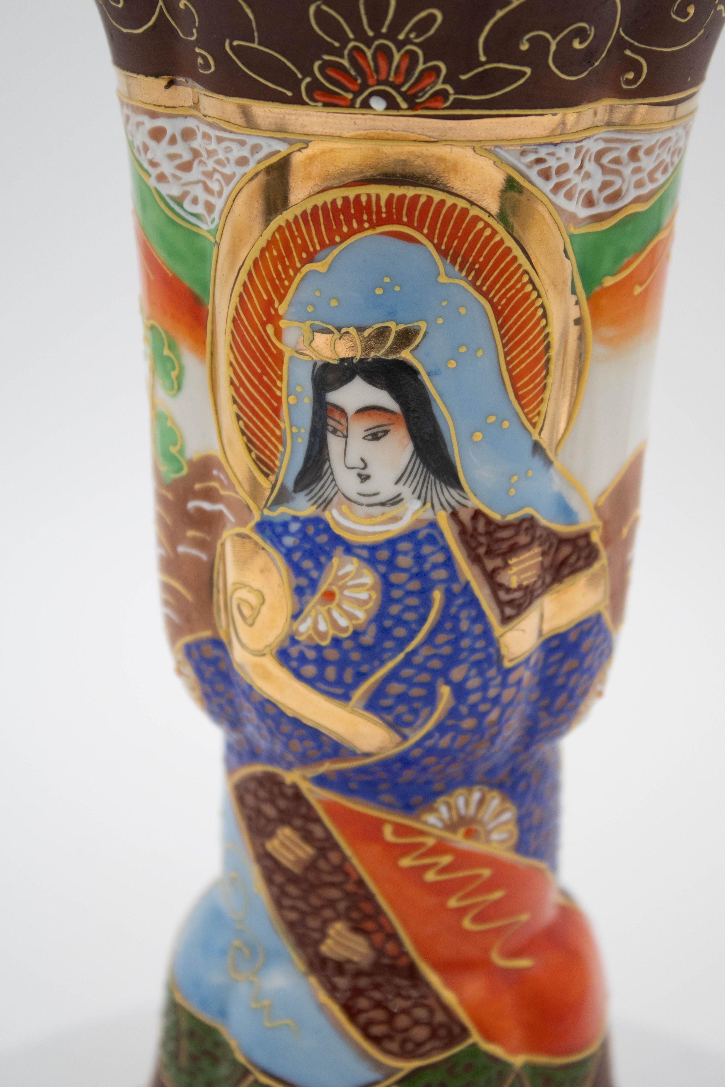 Painted Japanese Porcelain Vase with Woman in Blue on FrontEntry/Object ID