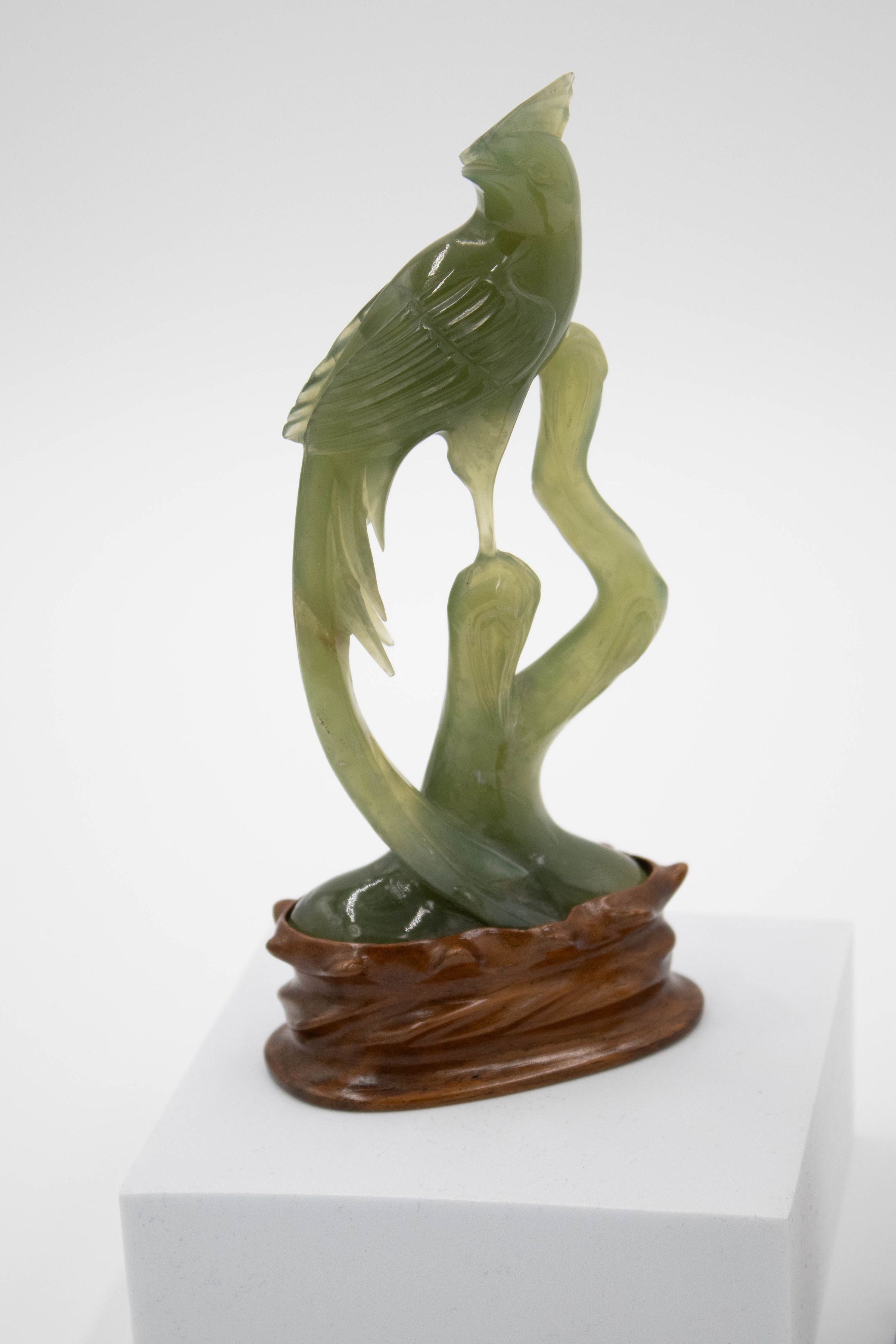 Pair of Carved Jade Bird Statuettes with Wooden StandsEntry/Object ID