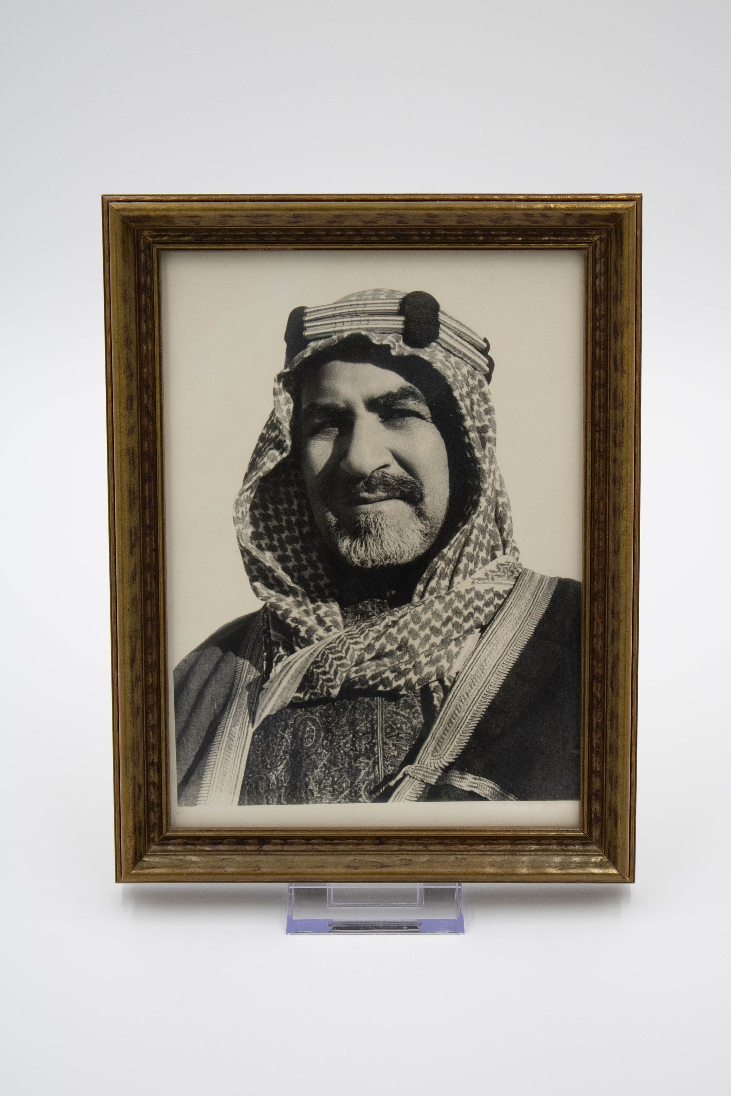 Black and white photograph of Emir Ahmad al-Jaber al-Sabah in a gold frame.Ethnography