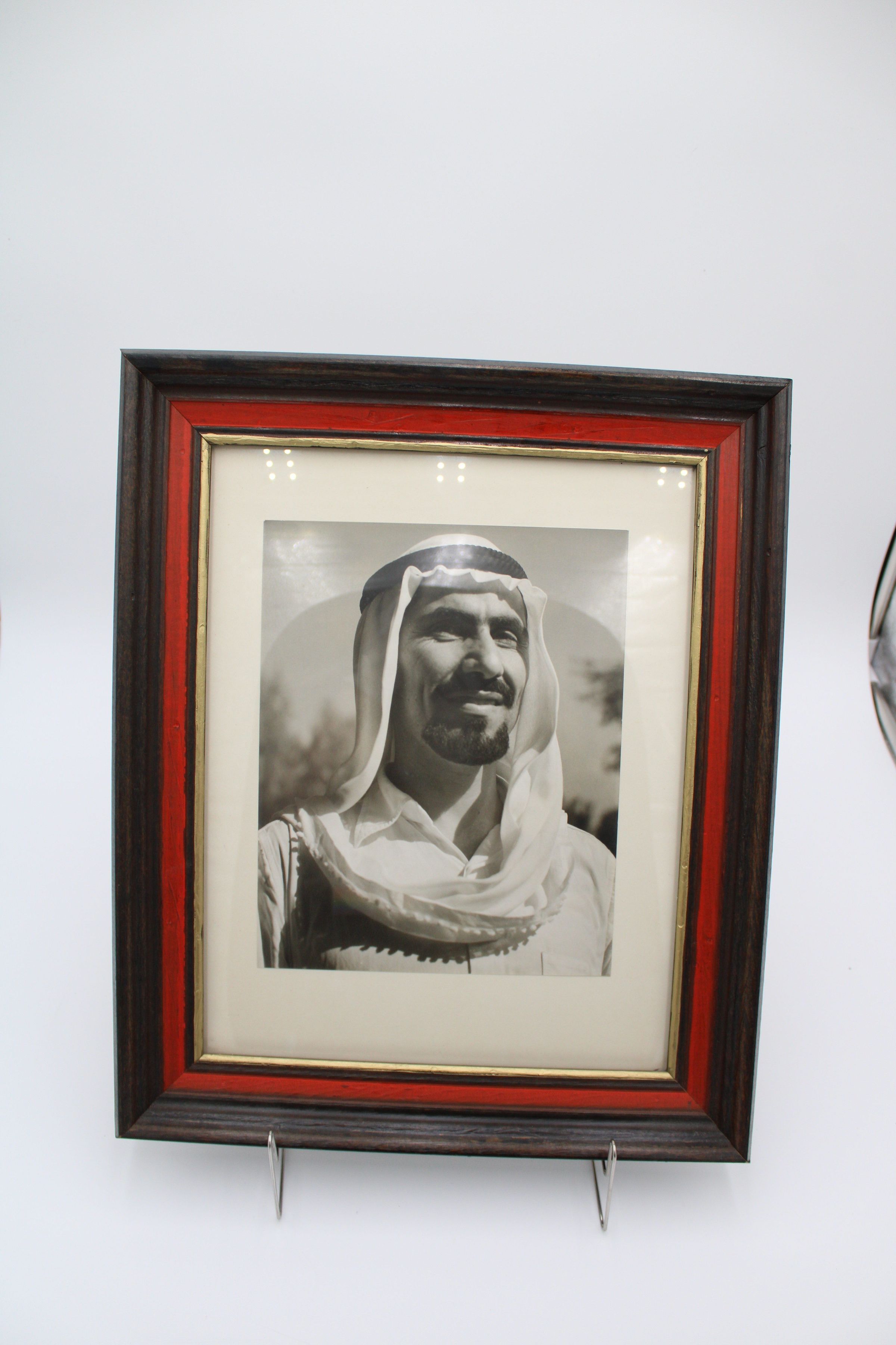 Black and white framed photograph oh Jaber Al-Ahmad Al-Sabah.