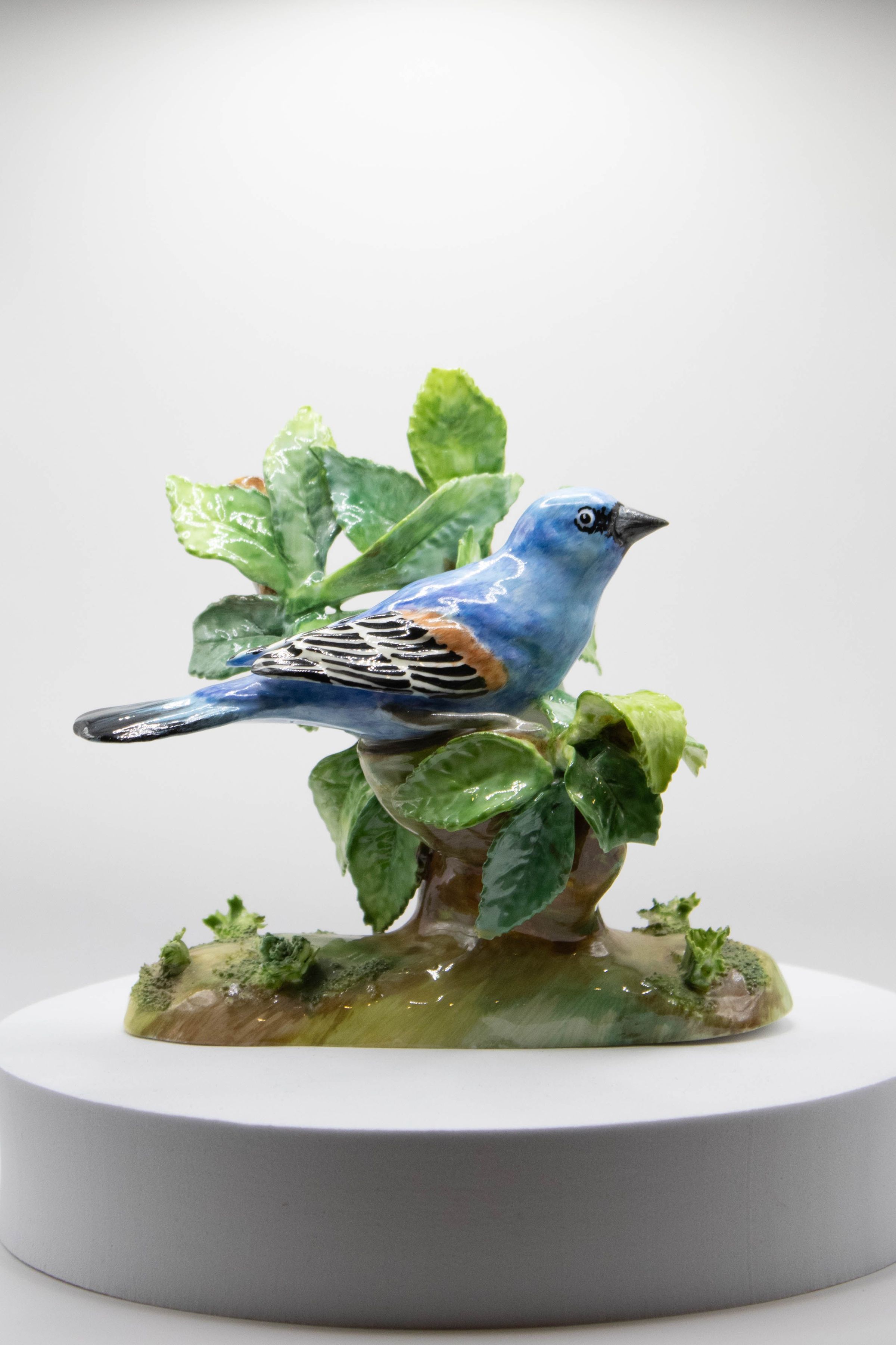 Porcelain figurine of blue jay on a branch.Ethnography