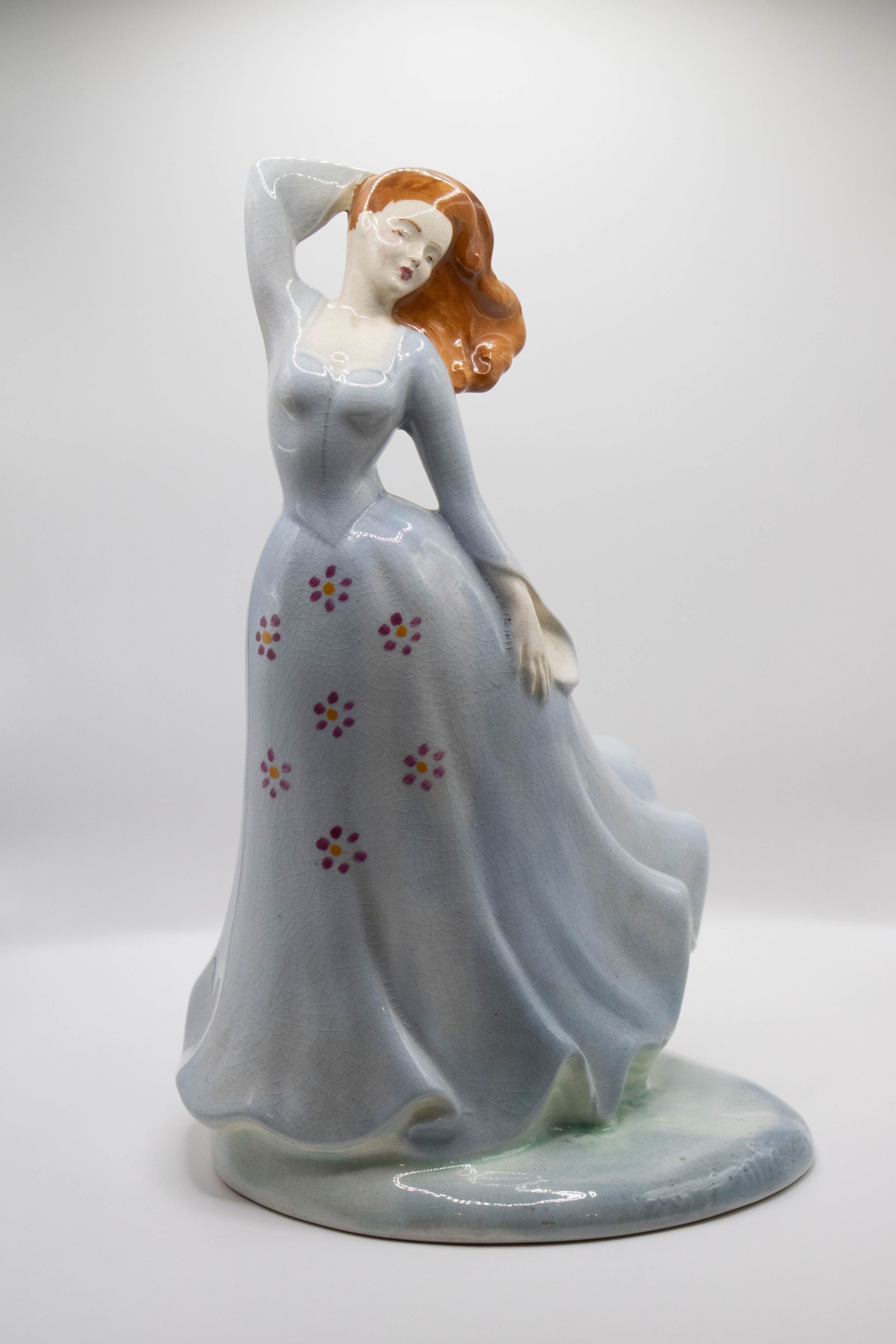 Gray dressed with red flowers porcelain figurine with red hair.Ethnography
