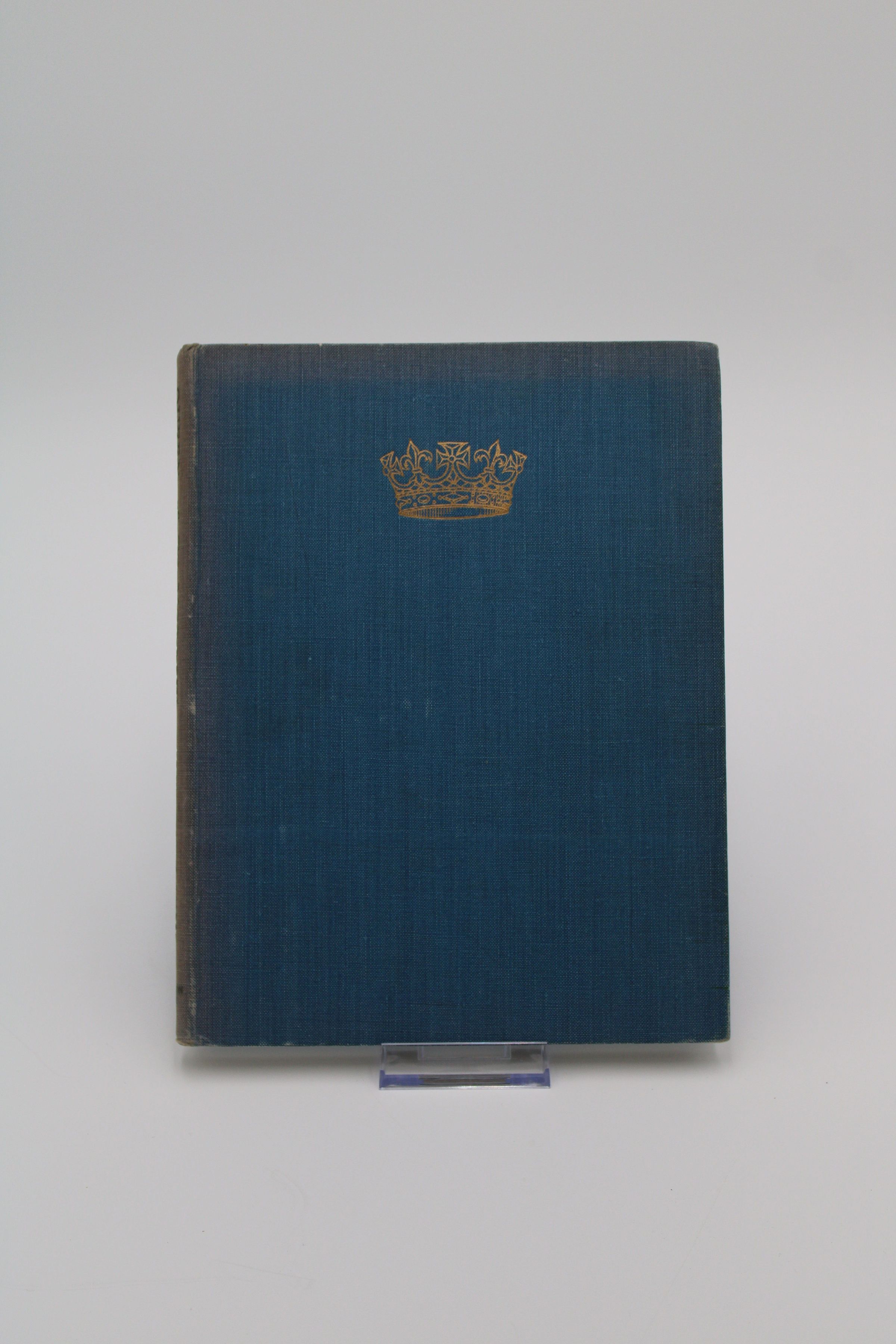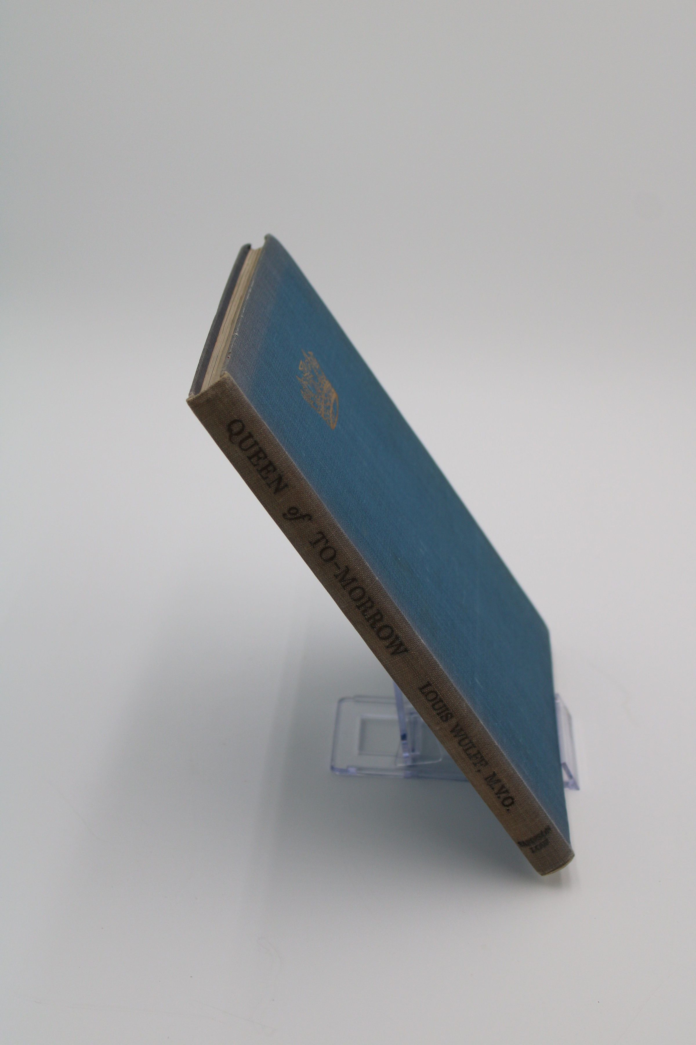 The front cover of "Queen of To-Morrow" has an English-style yellow crown featured against a navy cover.