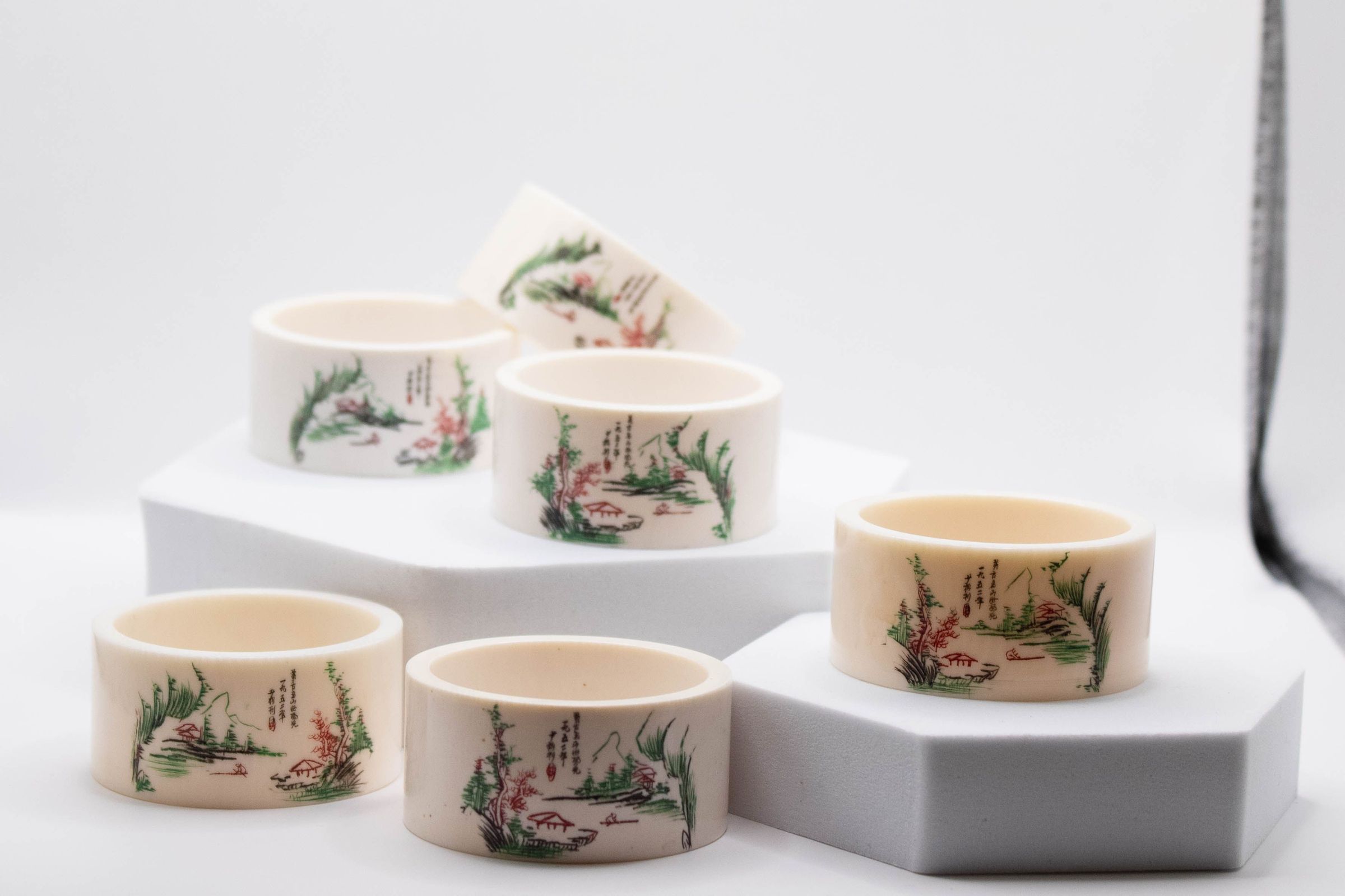 Set of Ivory Chinese Napkin Rings with Painted Garden SceneEntry/Object ID
