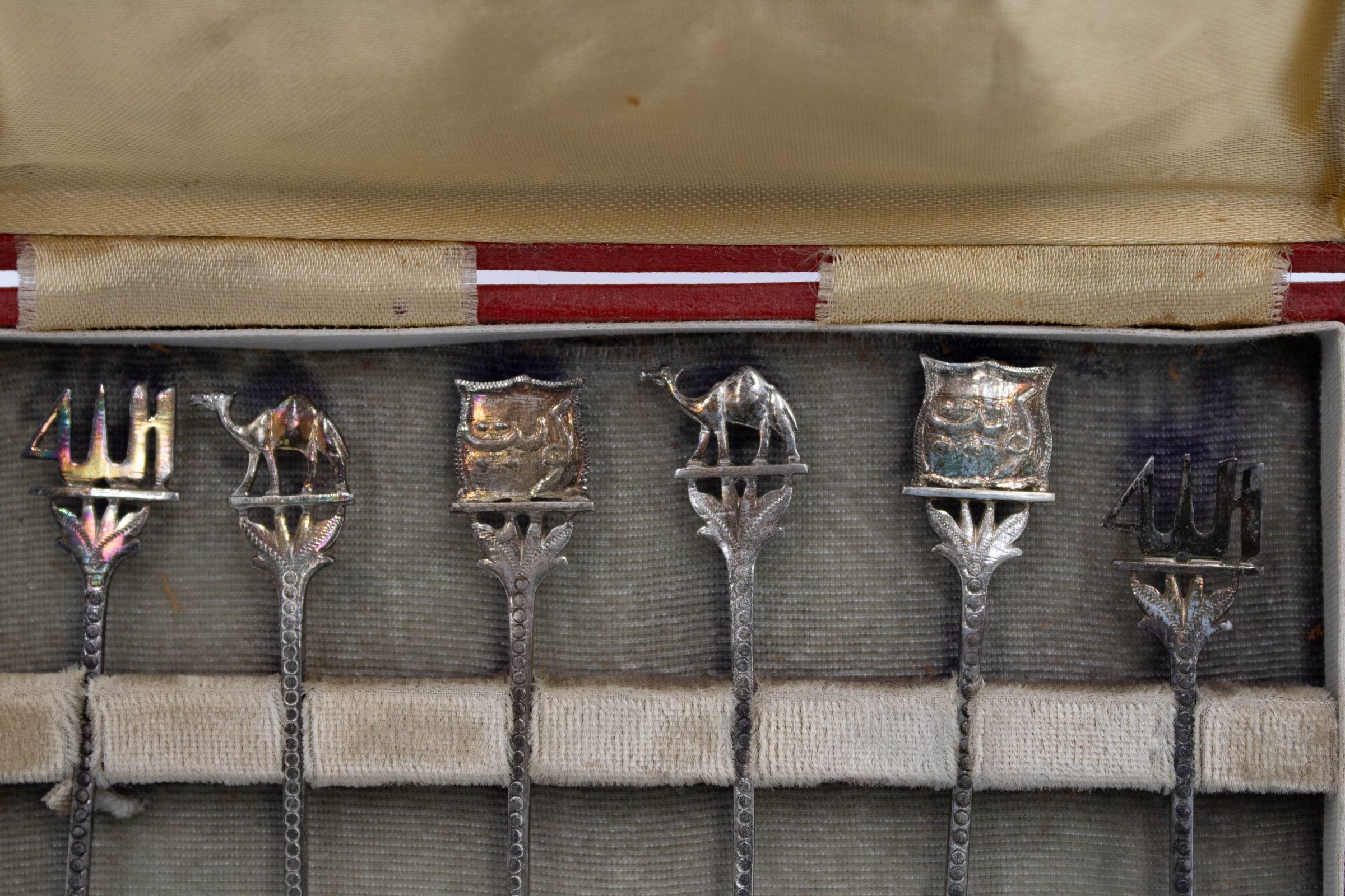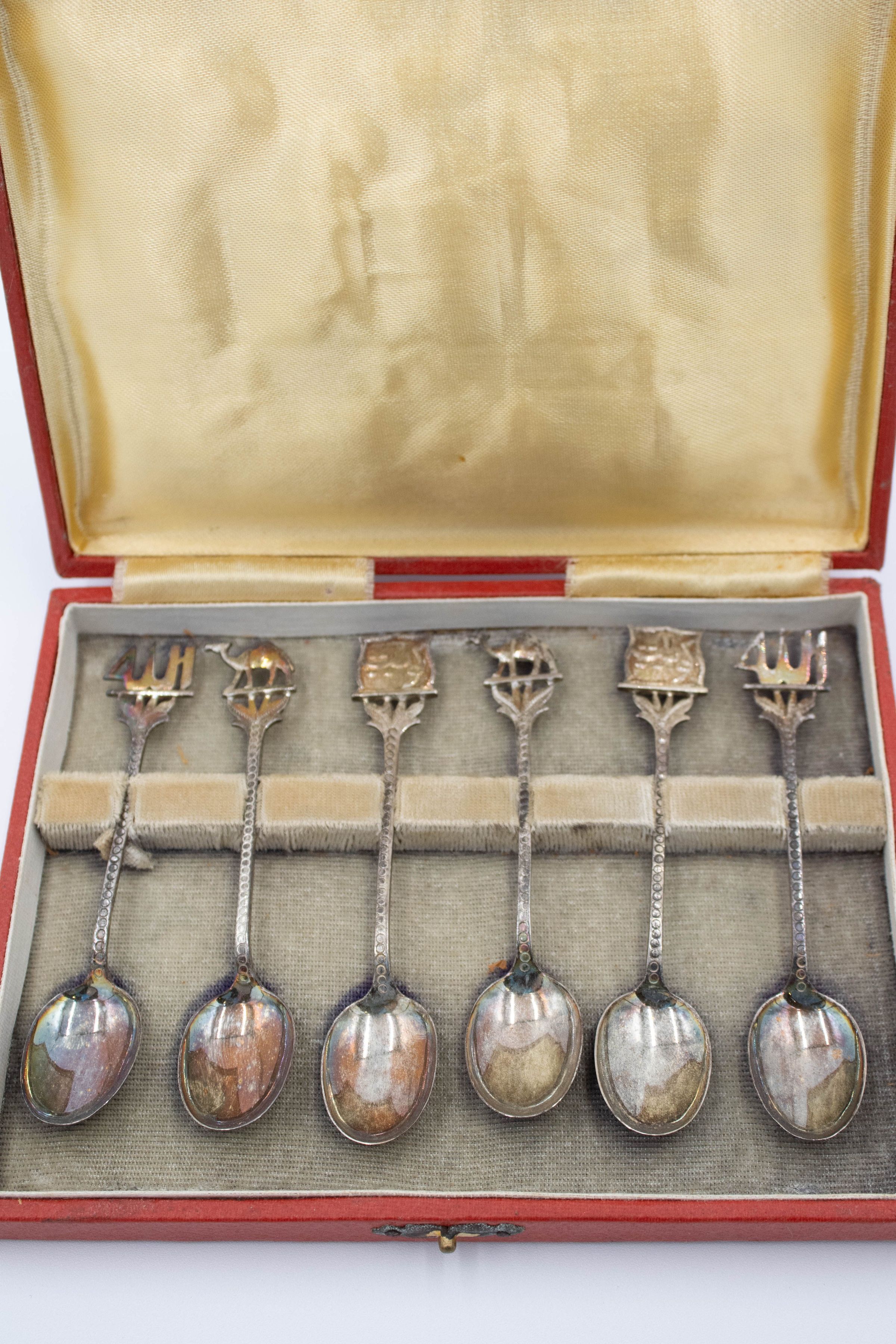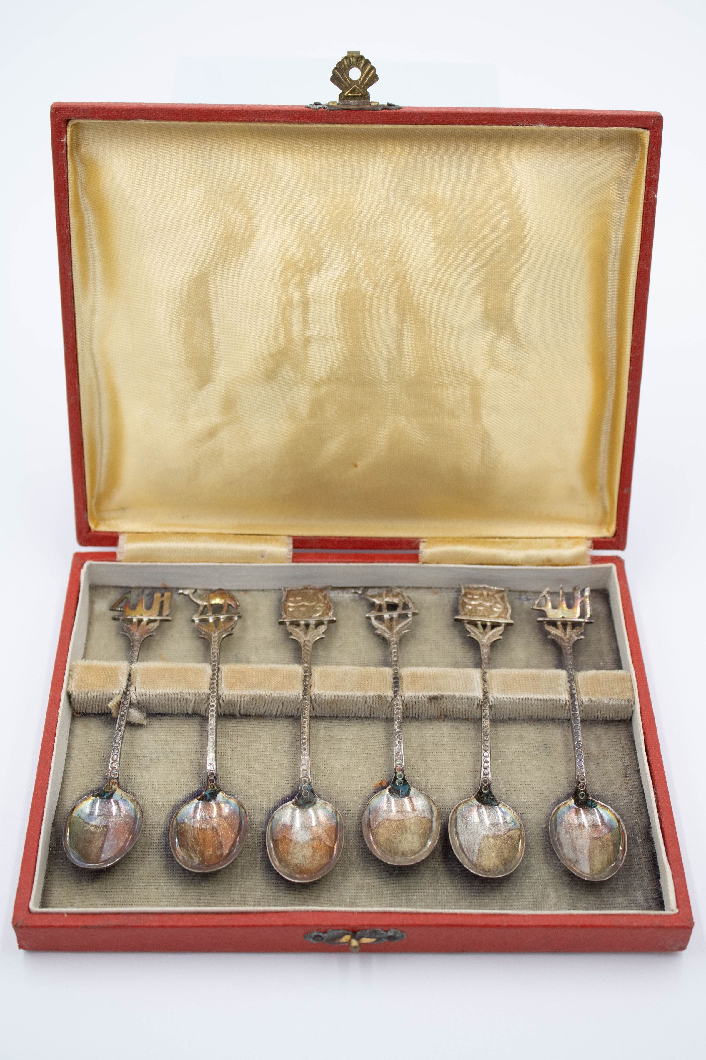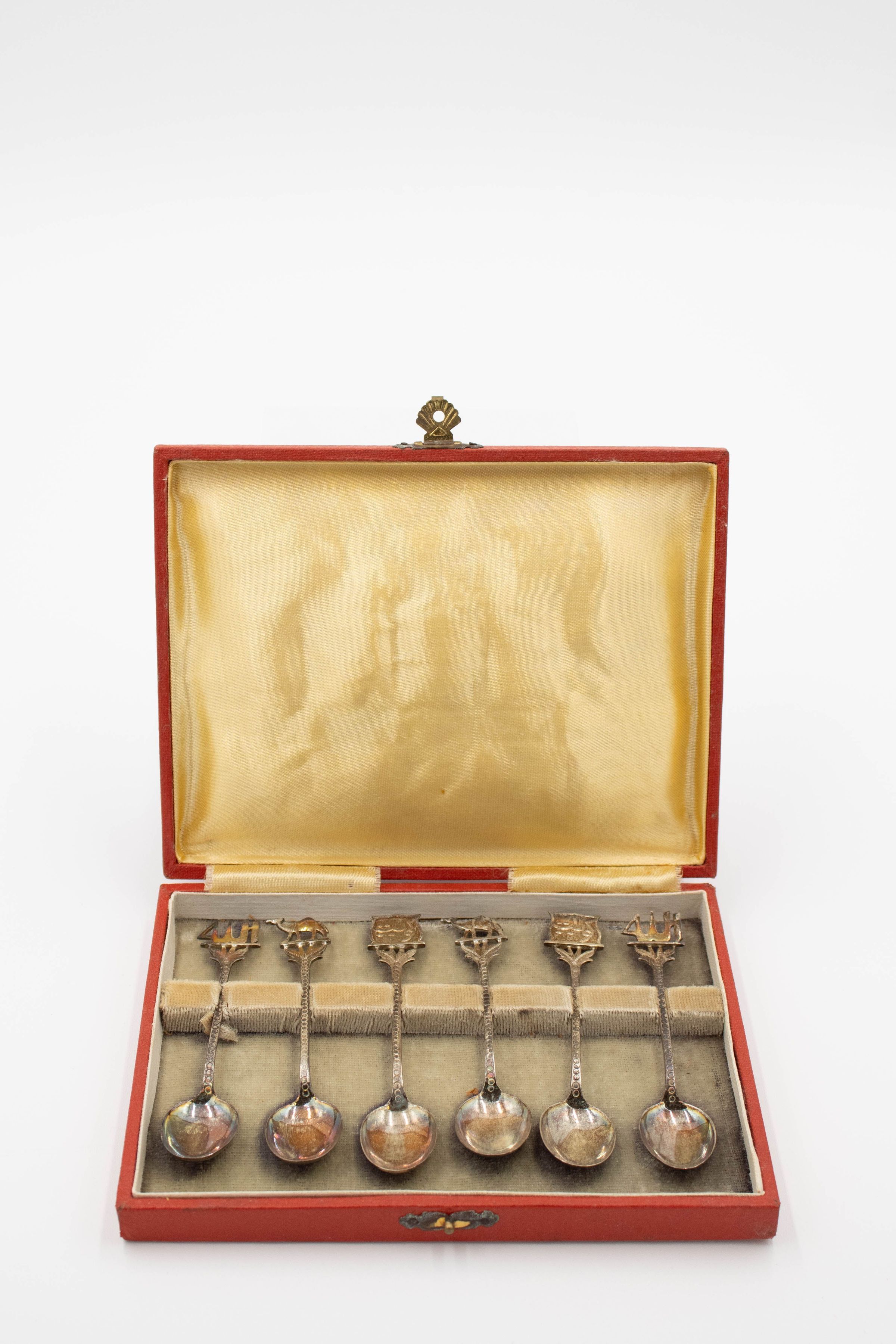 Set of Silver Camel, Arabic, and Boat Decorative Spoons with Red CaseEntry/Object ID