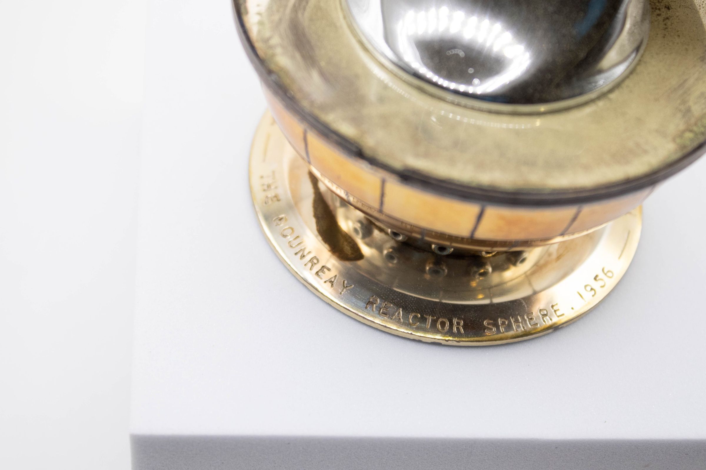 Silver globe-shaped lighter from Motherwell Bridge Engineering Co. Intended to be the Dounreay Reactor Sphere.Context