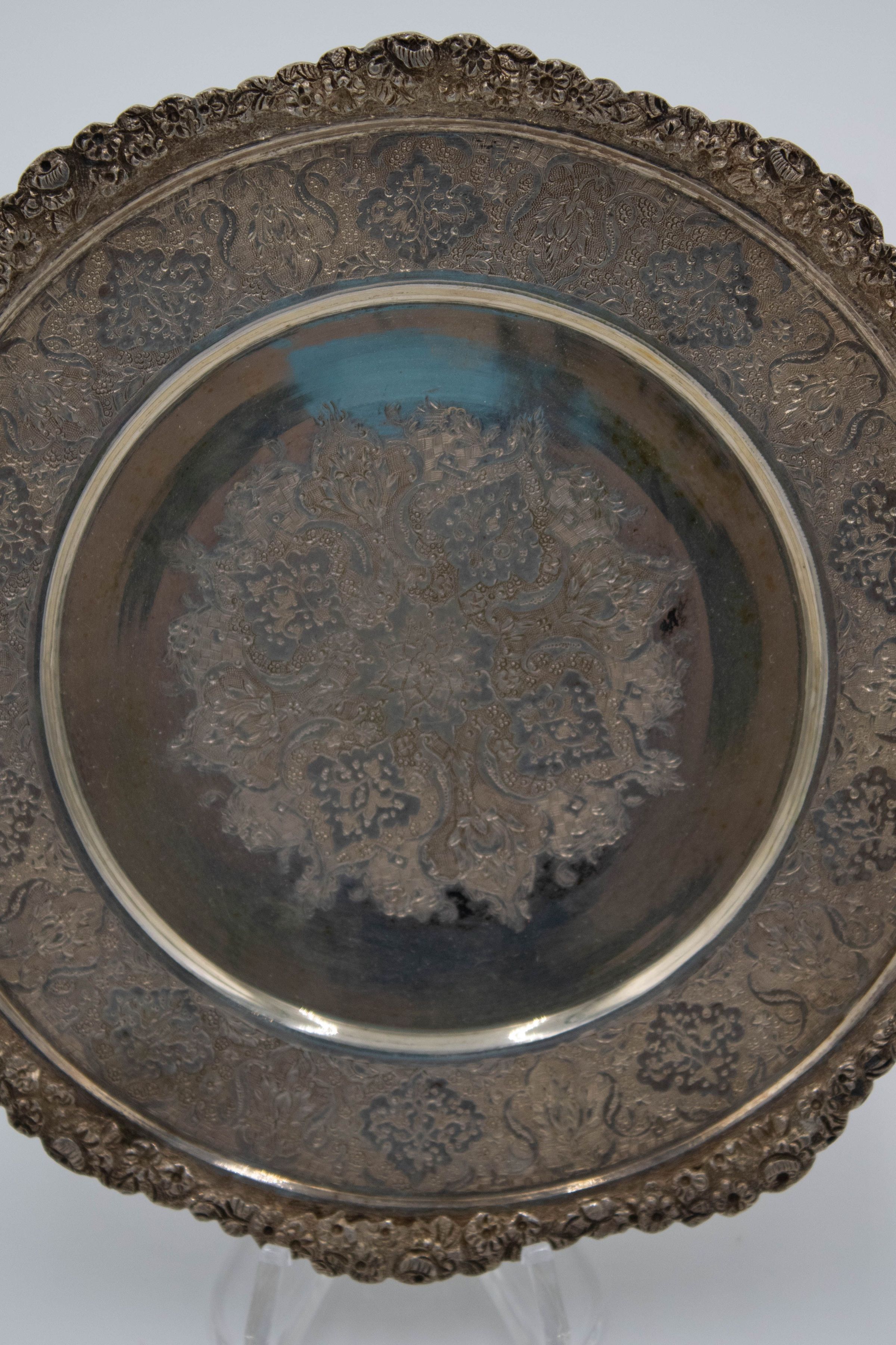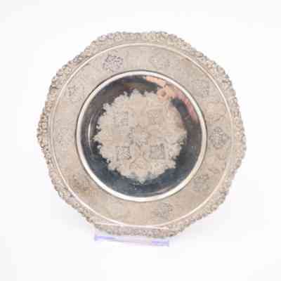 Small Round Silver Plate Engraved with Repeating Pattern