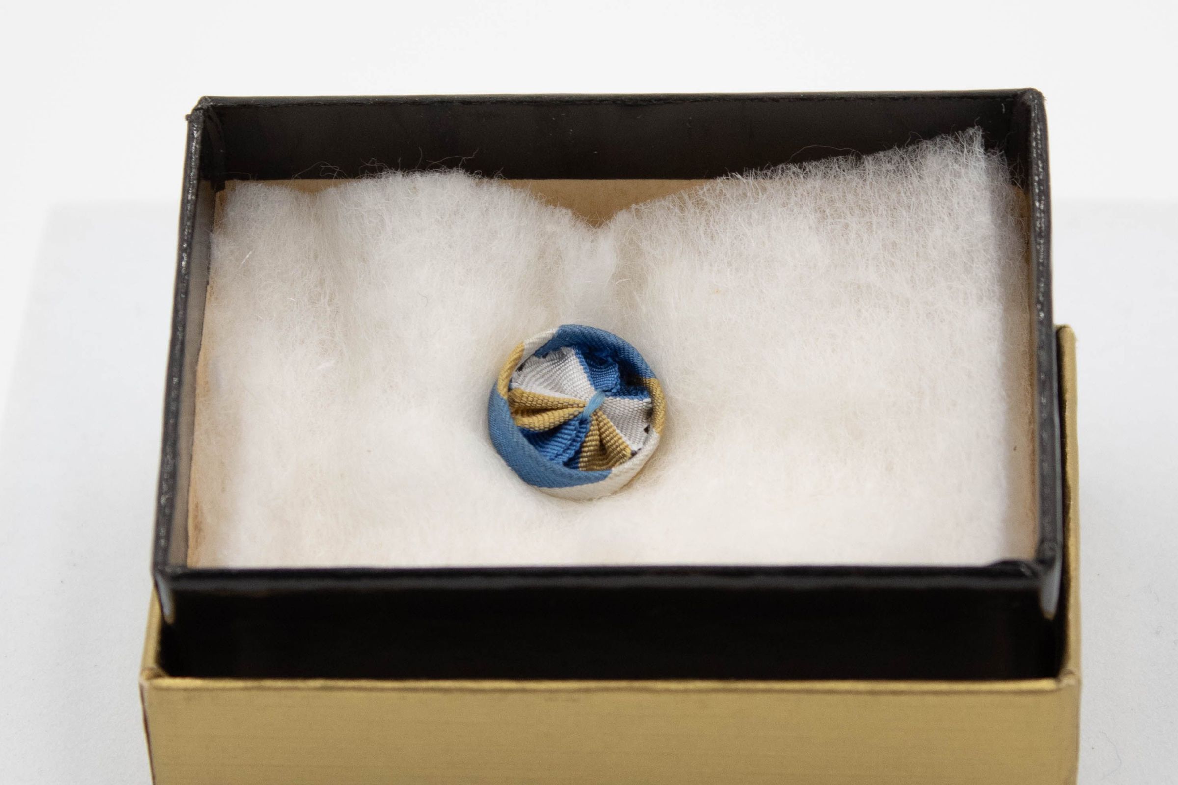 Blue and yellow Sons of the American Revolution member rosette pin.Context