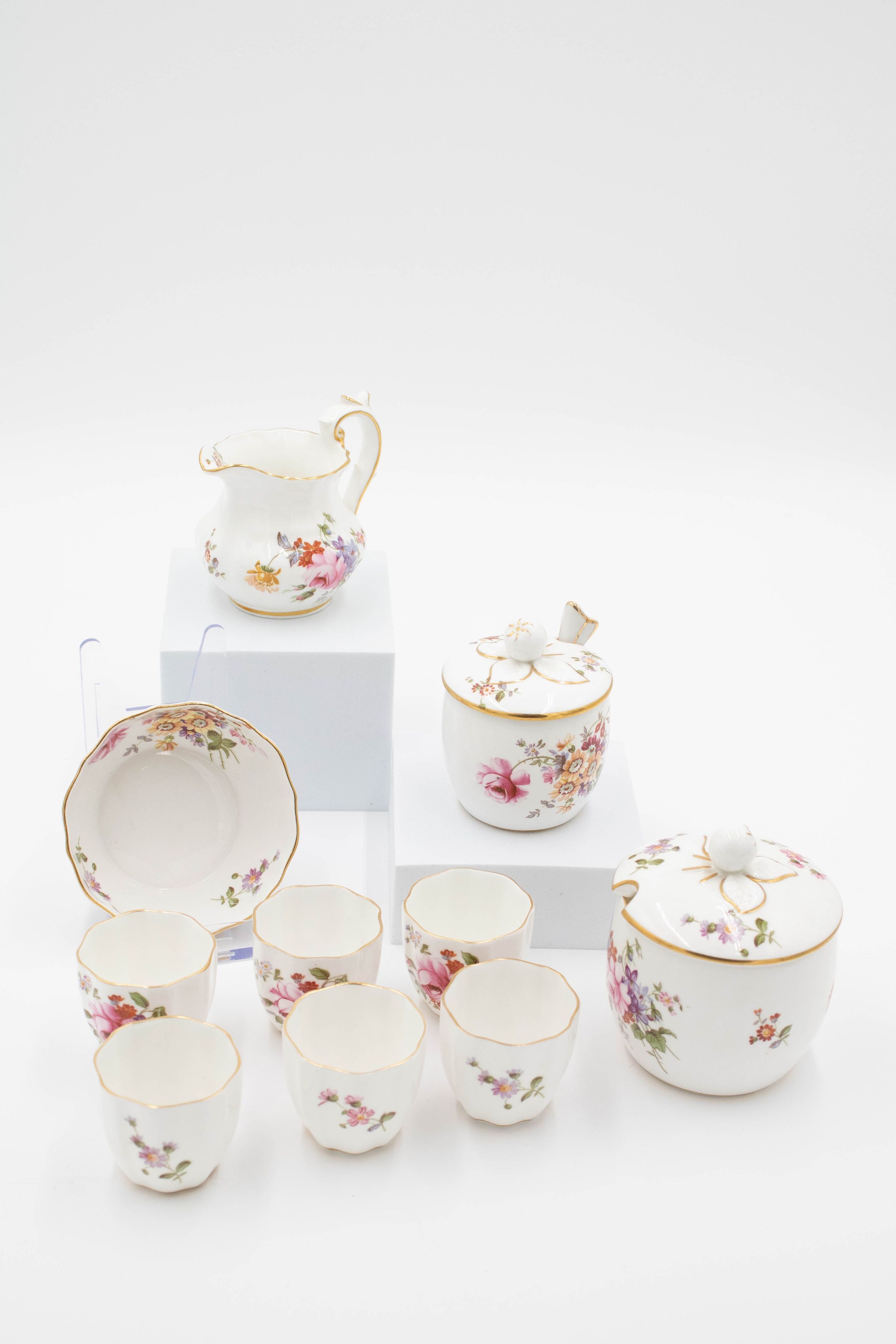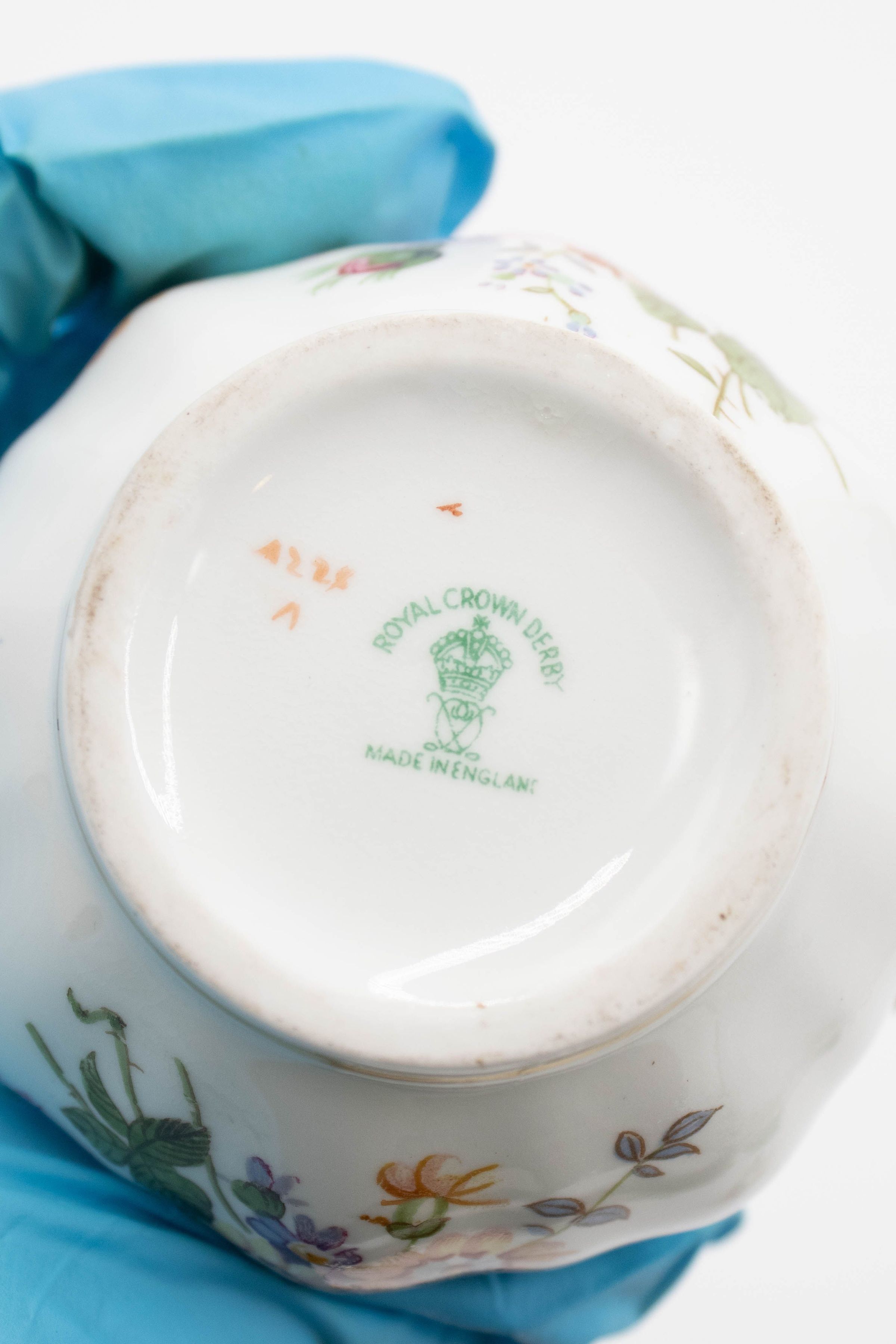 White Royal Crown Derby Porcelain Set with Pink and Colored FlowersEntry/Object ID