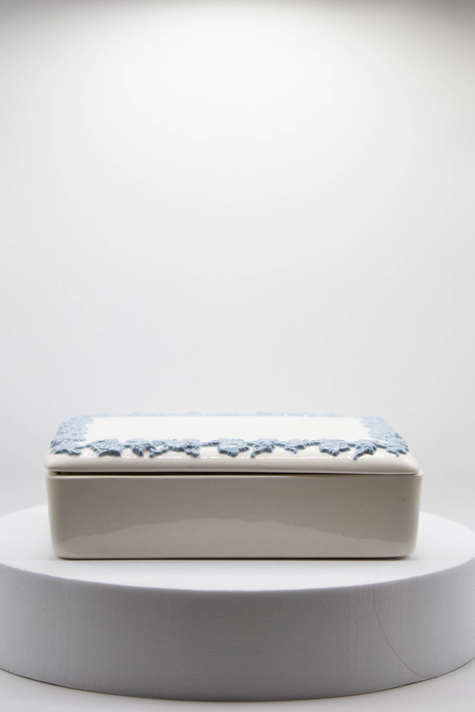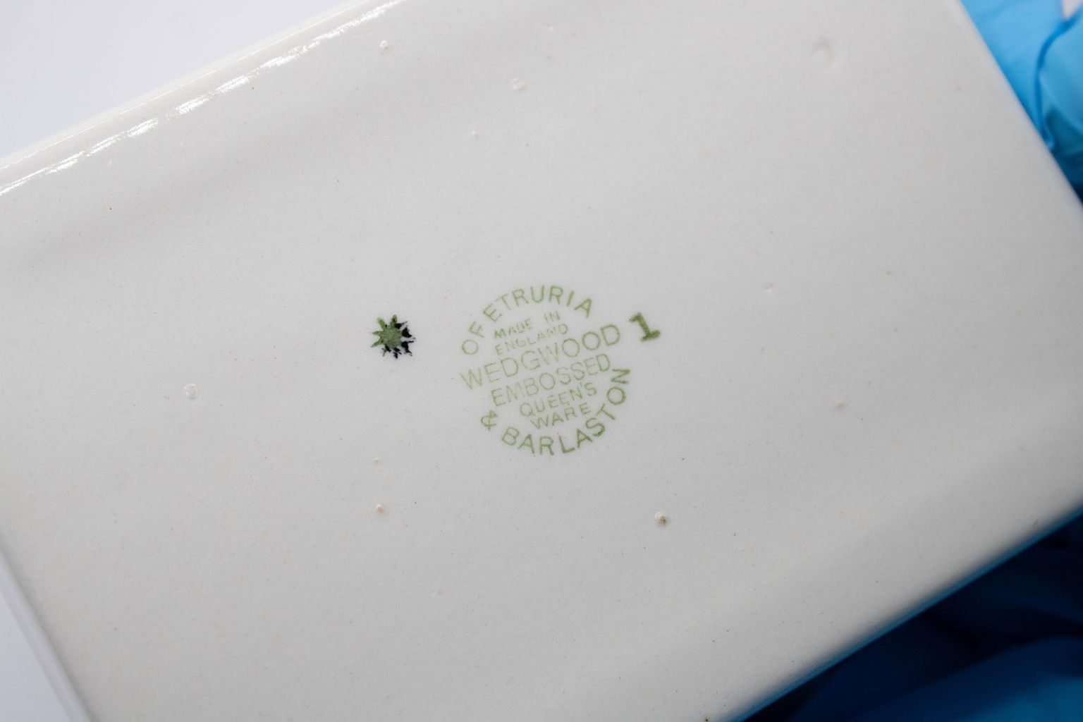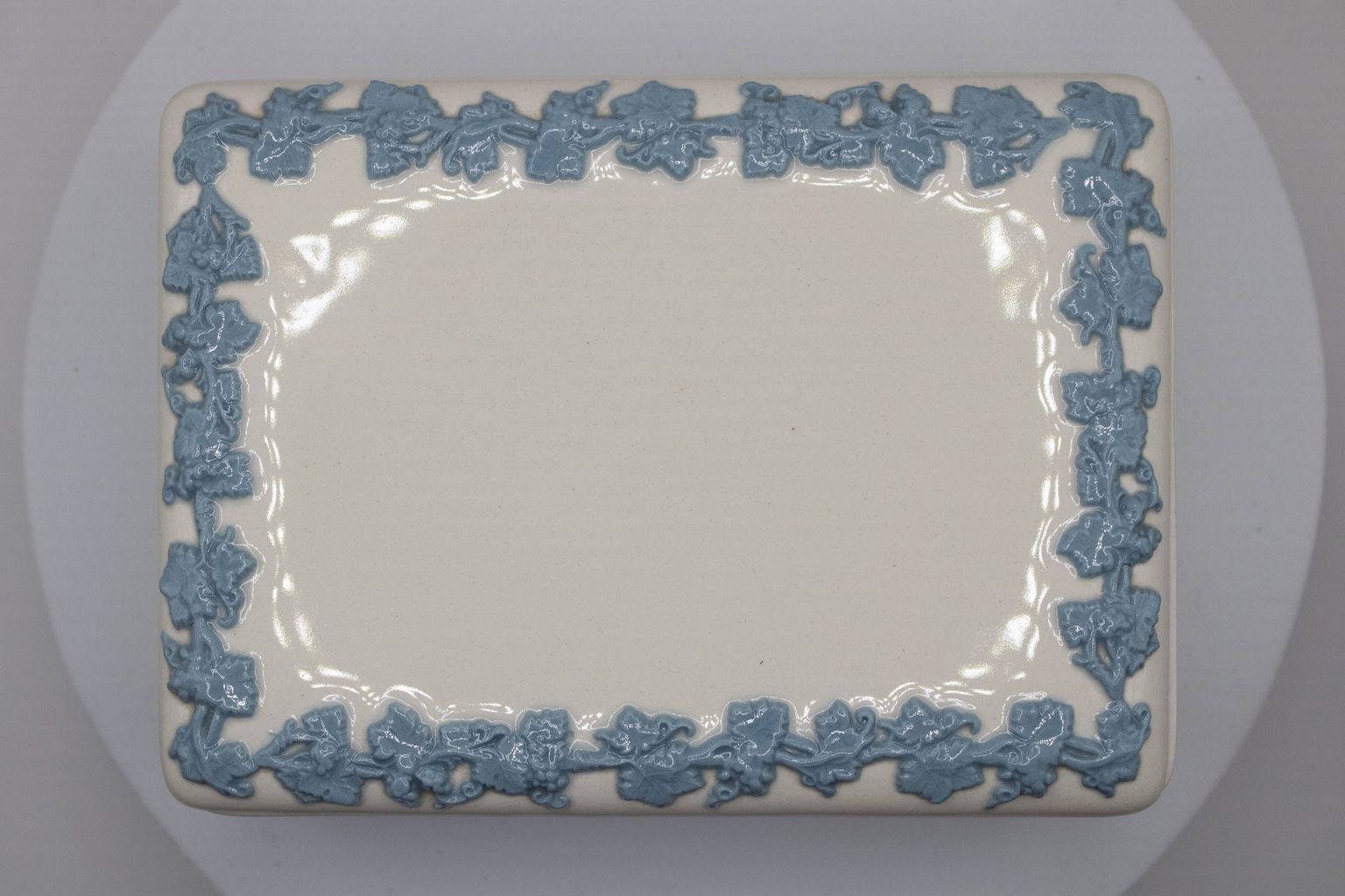 White Wedgwood Queen's Ware Ashtrays and Cigarette Box with Blue Ivy DetailEntry/Object ID
