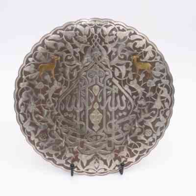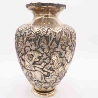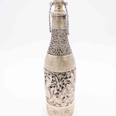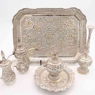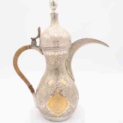 Sterling Silver and Bronze Coffee Pot Engraved with Arabic Script Flags