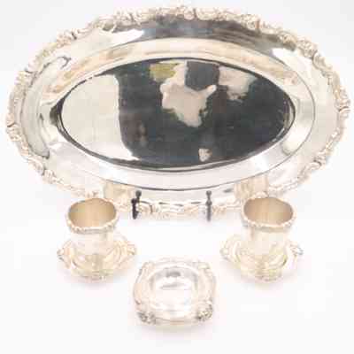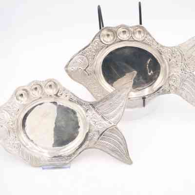Small Silver Ashtray with Engraved Tiki Cigarette Holders