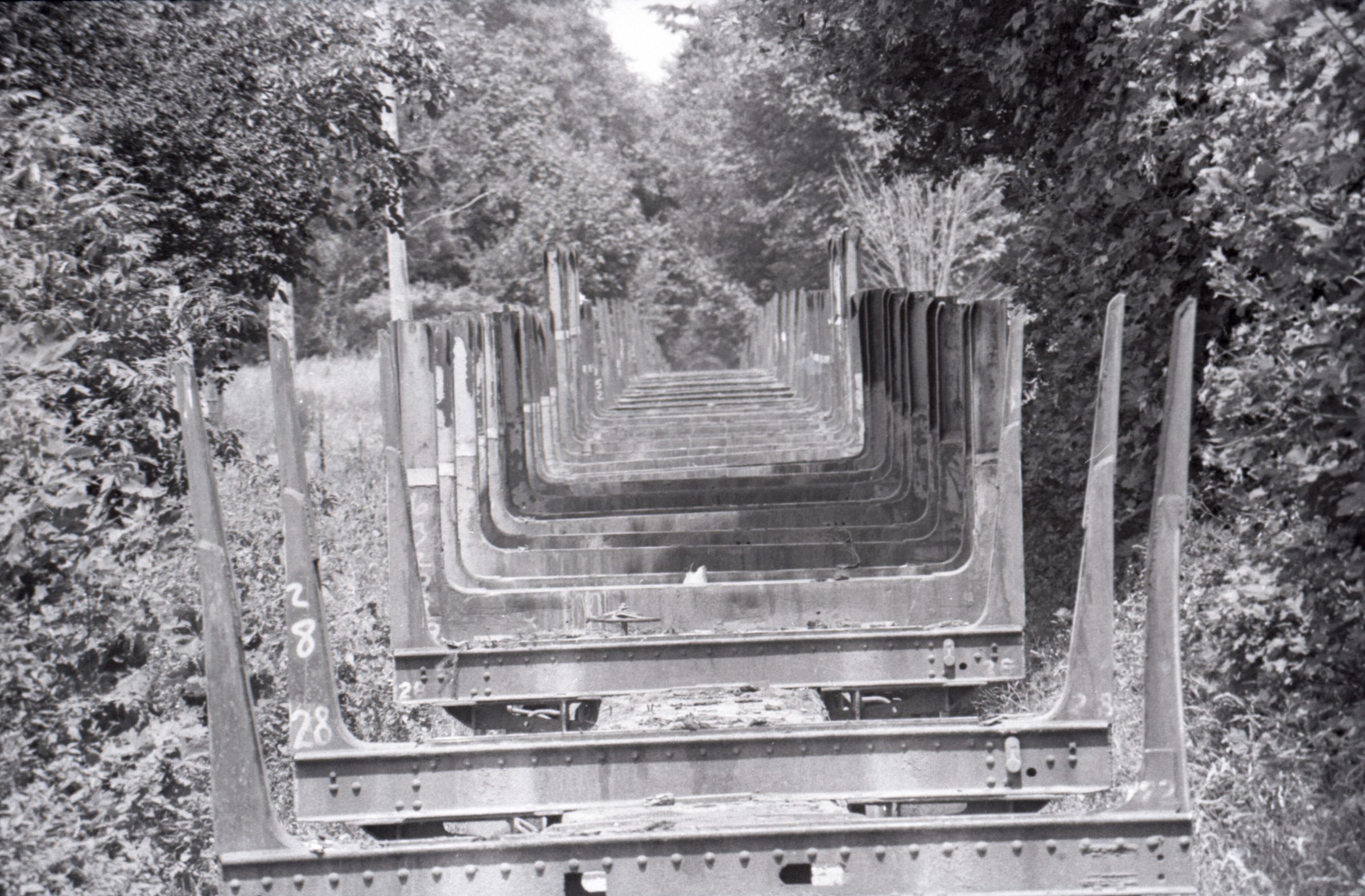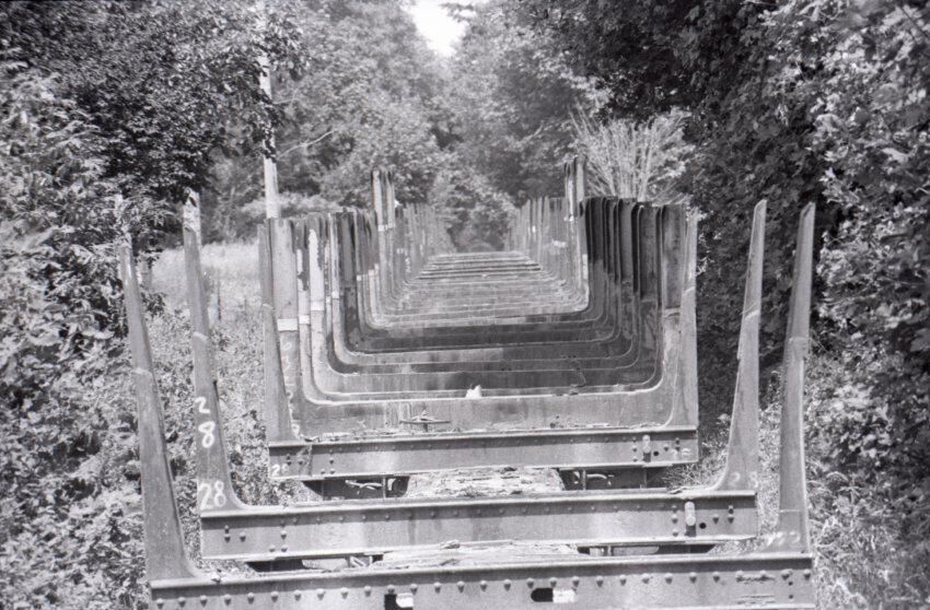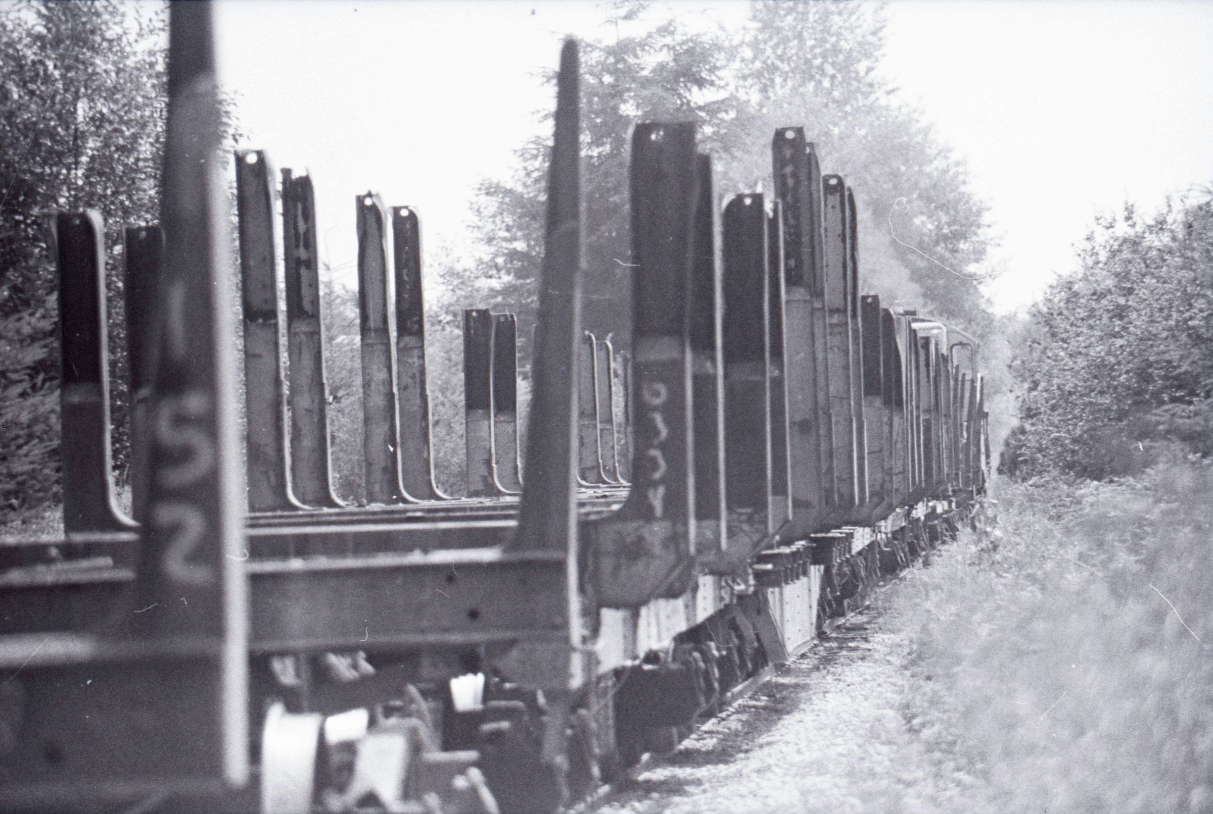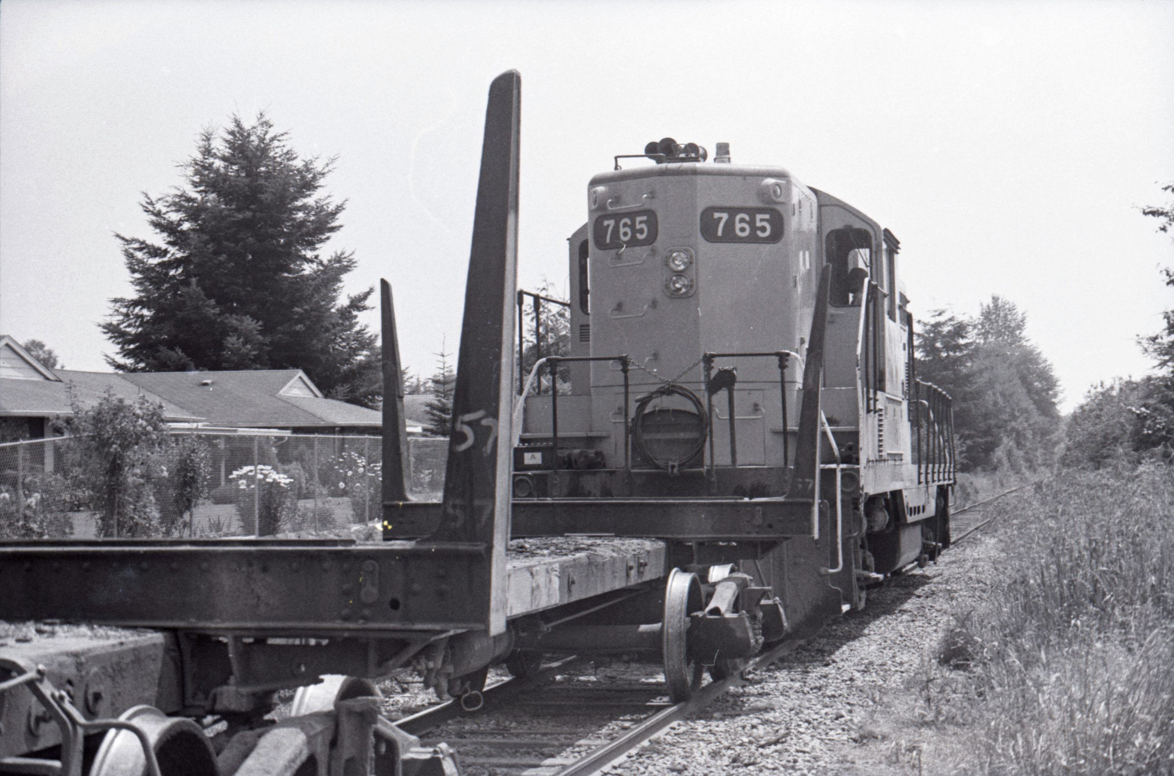 Log Transportation, 1978. These eleven film negative strips were created for the Lacey Leader newspaper. These images show scenes associated with the transportation of logs via rail and water. These images were created using three separate film rolls, so some of the physical numbers on the strips are repeated. For the purposes of this description, the strips will be grouped according to the film roll from which they originally came. Each group will be assigned a lower-case letter to go along with the physical numbers on the strips (ex: 1a, 2a, 3a, 2b, 2b, 3b, etc.) to help differentiate between images.