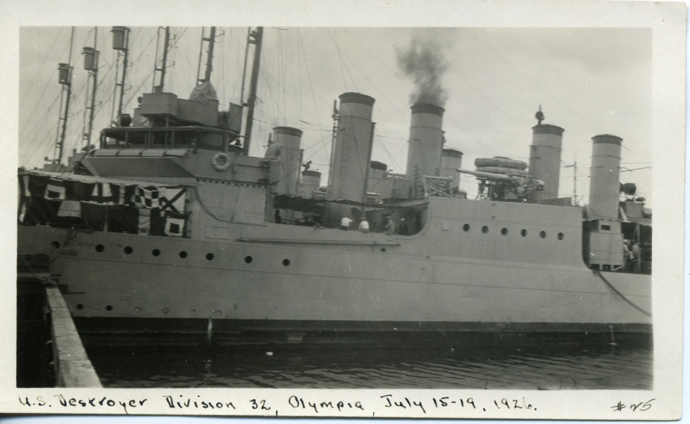 This print is inserted in an envelope that has written on it "Olympia July 15-19, 1926 U. S. Destroyer Division 32". A stamp says "25" and "indexed".Made/Created