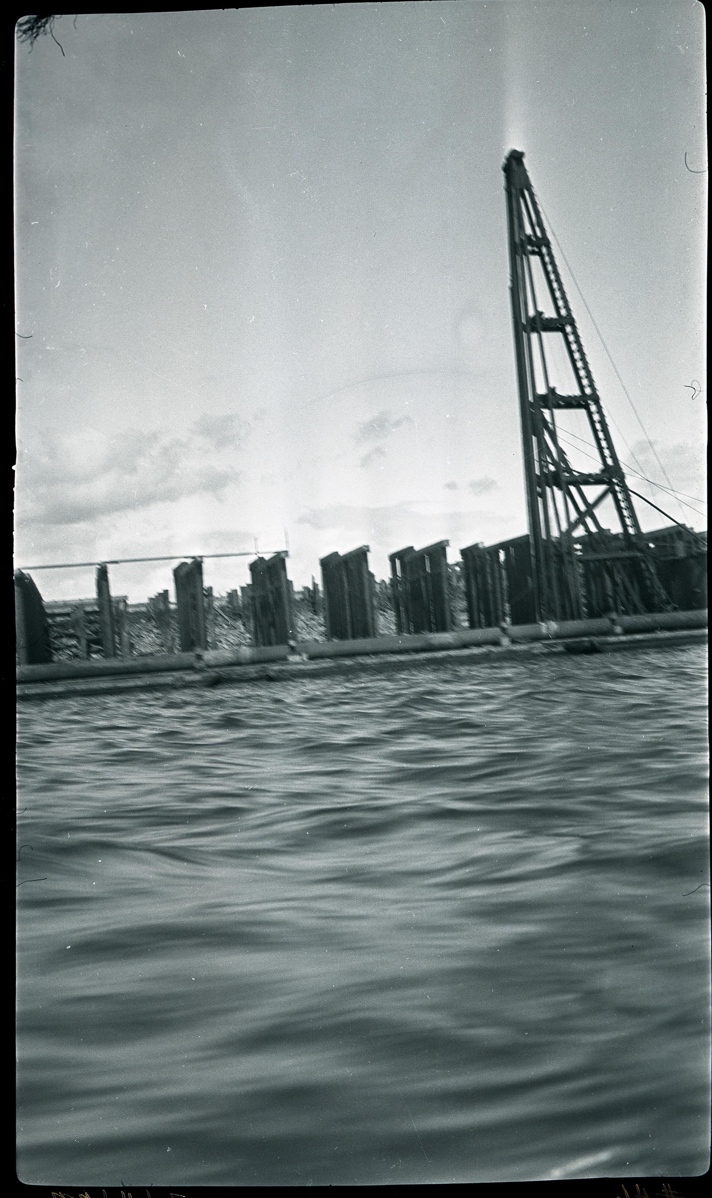 This negative is inserted in a brown envelope along with a print of the image. Typed on the envelope is "Olympia Pile Driver at Port Dock July 4, 1927". Stamped is "46" and "indexed".Made/Created
