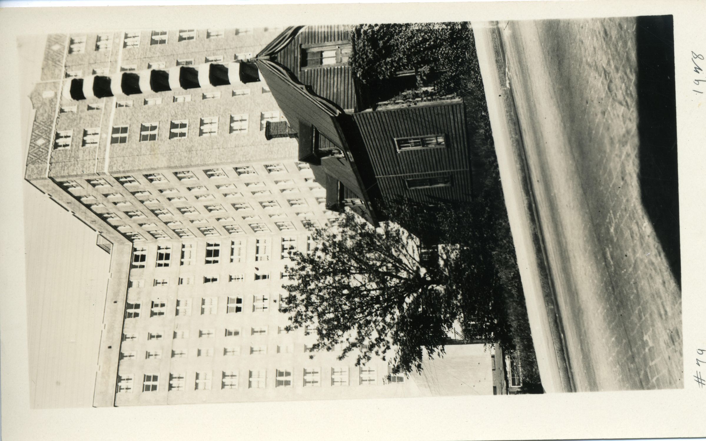 The photo is inserted into a brown envelope along with a negative of the image. On the envelope is typed "Seattle Summer, 1928 Hotel Exeter from Seventh Street". Stamped is "79" and "indexed".Made/Created